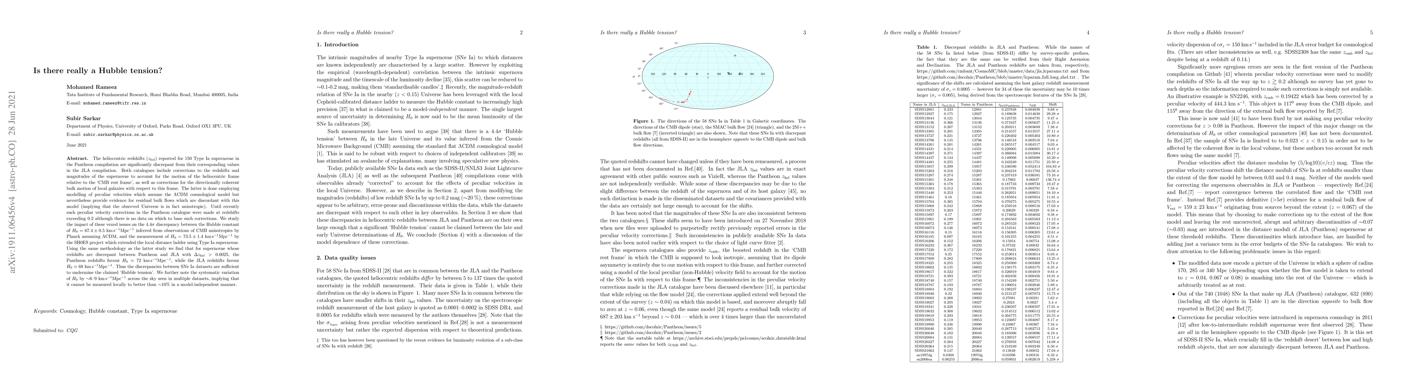 The heliocentric redshifts ($z_\mathrm{hel}$) reported for 150 Type Ia supernovae in the Pantheon compilation are significantly discrepant from their corresponding values in the JLA compilation. Both catalogues include corrections to the redshifts and magnitudes of the supernovae to account for the motion of the heliocentric frame relative to the `CMB rest frame', as well as corrections for the directionally coherent bulk motion of local galaxies with respect to this frame. The latter is done employing modelling of peculiar velocities which assume the $\Lambda$CDM cosmological model but nevertheless provide evidence for residual bulk flows which are discordant with this model (implying that the observed Universe is in fact anisotropic). Until recently such peculiar velocity corrections in the Pantheon catalogue were made at redshifts exceeding 0.2 although there is no data on which to base such corrections. We study the impact of these vexed issues on the 4.4 $\sigma$ discrepancy between the Hubble constant of $H_0 = 67.4 \pm 0.5$ km/s/Mpc inferred from observations of CMB anisotropies by Planck assuming $\Lambda$CDM, and the measurement of $H_0 = 73.5 \pm 1.4$ km/s/Mpc by the SH0ES project which extended the local distance ladder using Type Ia supernovae. Using the same methodology as the latter study we find that for supernovae whose redshifts are discrepant between Pantheon and JLA with $\Delta z_\mathrm{hel} > 0.0025$, the Pantheon redshifts favour $H_0 \simeq 72$ km/s/Mpc, while the JLA redshifts favour $H_0 \simeq 68$ km/s/Mpc. Thus the discrepancies between SNe Ia datasets are sufficient to undermine the claimed `Hubble tension'. We further note the systematic variation of $H_0$ by $\sim$ 6-9 km/s/Mpc across the sky seen in multiple datasets, implying that it cannot be measured locally to better than $\sim$ 10% in a model-independent manner.