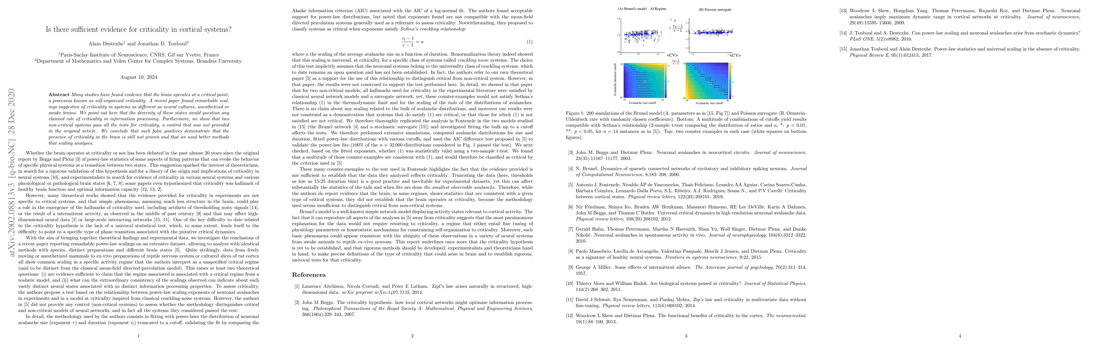 Research questioned the claim of criticality in brain systems, finding that two non-critical systems passed tests for criticality, highlighting the need for better methods to prove its presence.