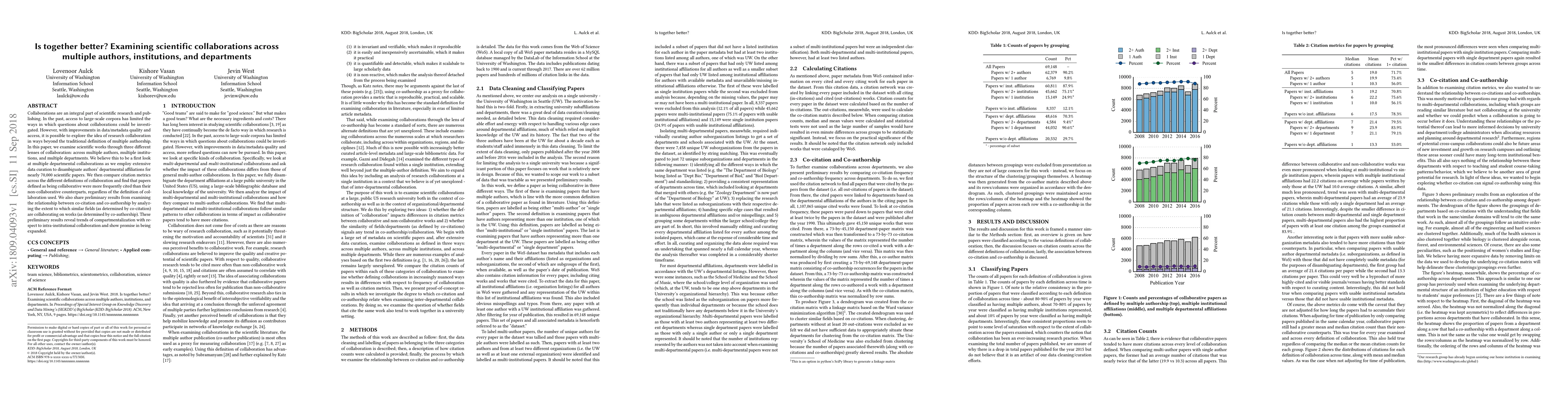 This paper investigates scientific collaborations across multiple authors, institutions, and departments using extensive data curation. It finds that collaborative papers, defined in various ways, are more frequently cited than non-collaborative ones, and it explores preliminary findings on the relationship between co-citation and co-authorship, revealing trends of compartmentalization in intra-institutional collaboration.