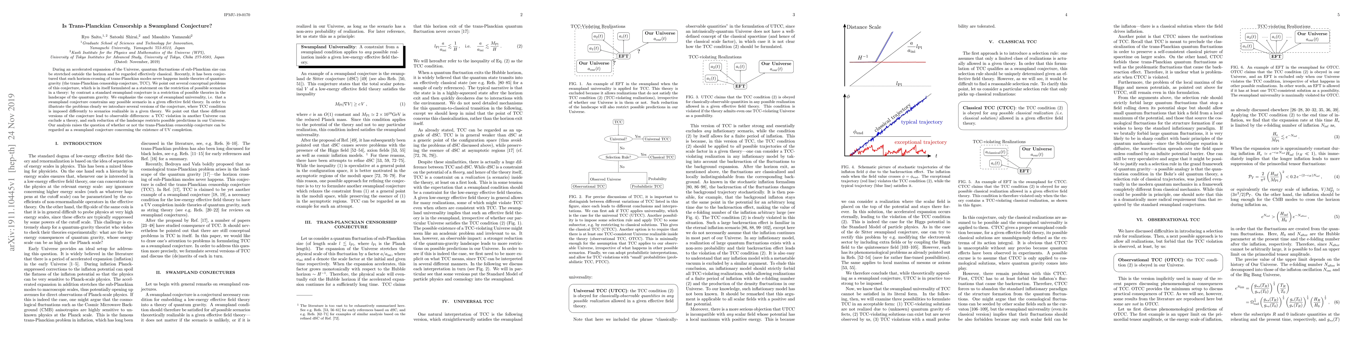 The paper discusses the trans-Planckian censorship conjecture (TCC), which posits that quantum fluctuations crossing the horizon should not occur in quantum gravity theories. It argues that TCC differs from standard swampland conjectures, which restrict possible theories in quantum gravity, suggesting that TCC's implications may limit predictions in our universe and thus question its classification as a swampland conjecture.