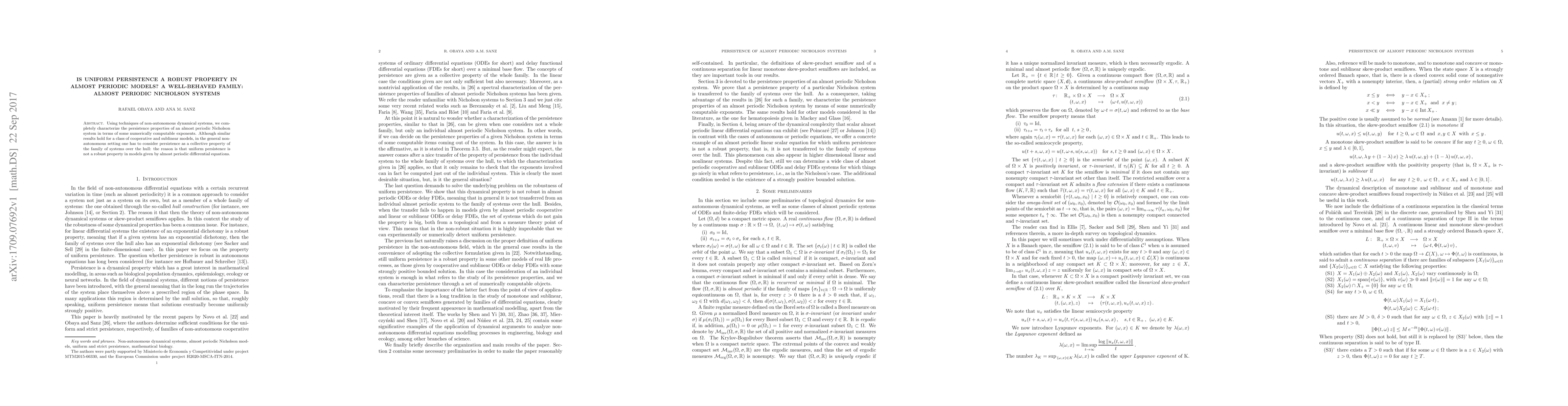 Researchers studied persistence in almost periodic Nicholson systems, finding that uniform persistence is not a robust property in general non-autonomous models, but can be characterized using computable exponents.