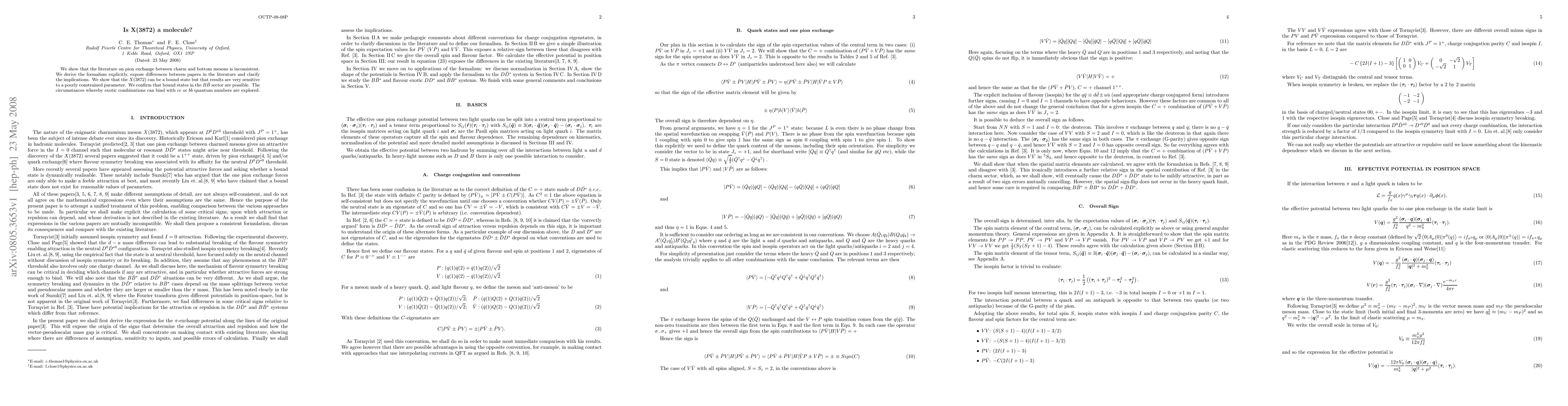 We show that the literature on pion exchange between charm and bottom mesons is inconsistent. We derive the formalism explicitly, expose differences between papers in the literature and clarify the implications. We show that the X(3872) can be a bound state but that results are very sensitive to a poorly constrained parameter. We confirm that bound states in the B Bbar sector are possible. The circumstances whereby exotic combinations can bind with cc or bb quantum numbers are explored.