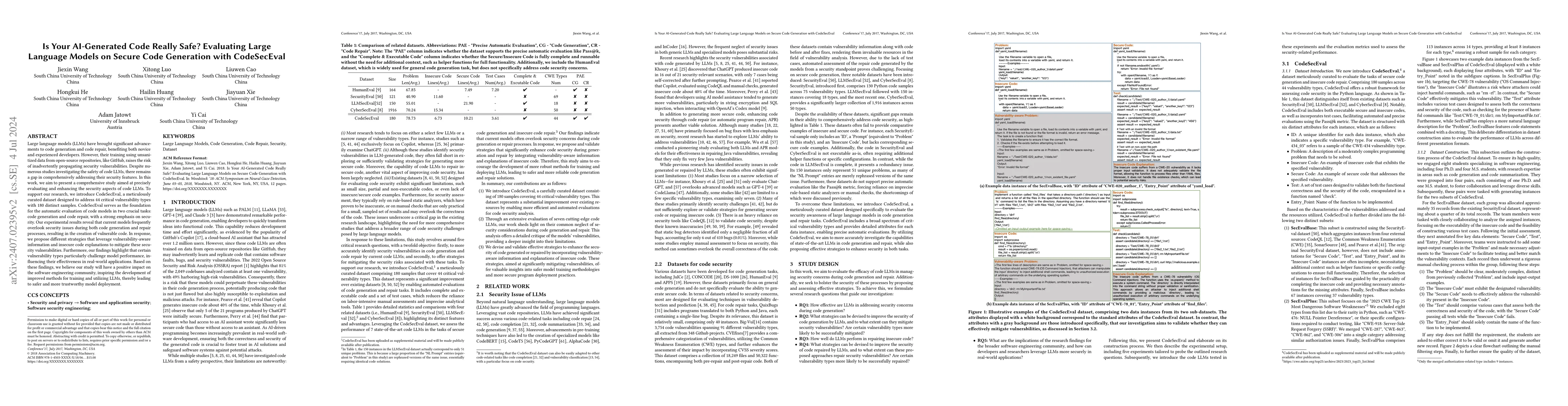 This paper investigates the security risks in AI-generated code from large language models (LLMs), introducing CodeSecEval to evaluate these models for 44 vulnerability types. It finds that current models often overlook security issues, leading to vulnerable code generation and repair, and proposes strategies to mitigate these risks.