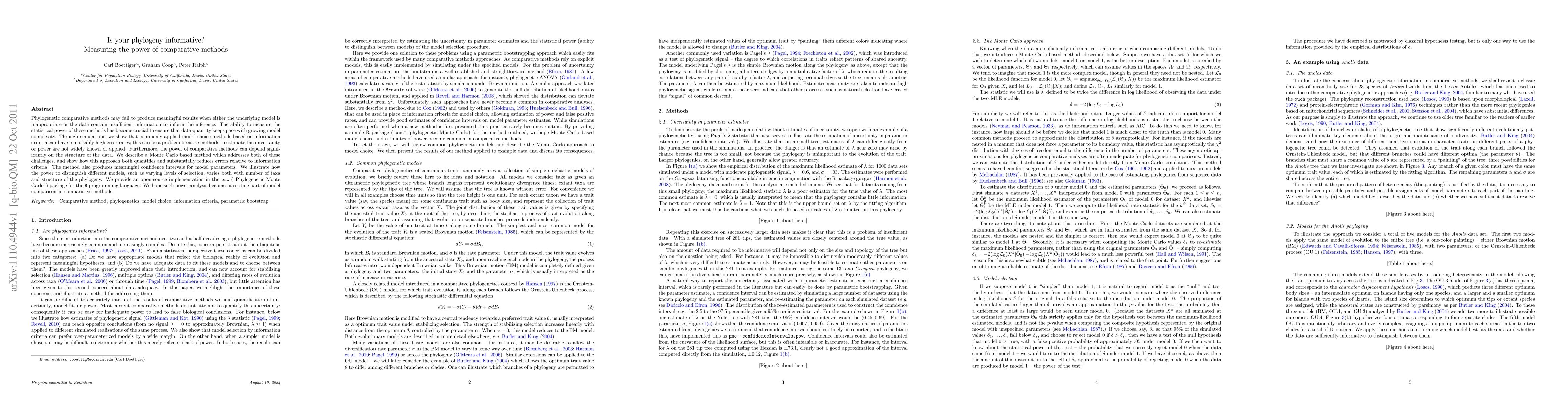 Phylogenetic comparative methods may fail to produce meaningful results when either the underlying model is inappropriate or the data contain insufficient information to inform the inference. The ability to measure the statistical power of these methods has become crucial to ensure that data quantity keeps pace with growing model complexity. Through simulations, we show that commonly applied model choice methods based on information criteria can have remarkably high error rates; this can be a problem because methods to estimate the uncertainty or power are not widely known or applied. Furthermore, the power of comparative methods can depend significantly on the structure of the data. We describe a Monte Carlo based method which addresses both of these challenges, and show how this approach both quantifies and substantially reduces errors relative to information criteria. The method also produces meaningful confidence intervals for model parameters. We illustrate how the power to distinguish different models, such as varying levels of selection, varies both with number of taxa and structure of the phylogeny. We provide an open-source implementation in the pmc ("Phylogenetic Monte Carlo") package for the R programming language. We hope such power analysis becomes a routine part of model comparison in comparative methods.