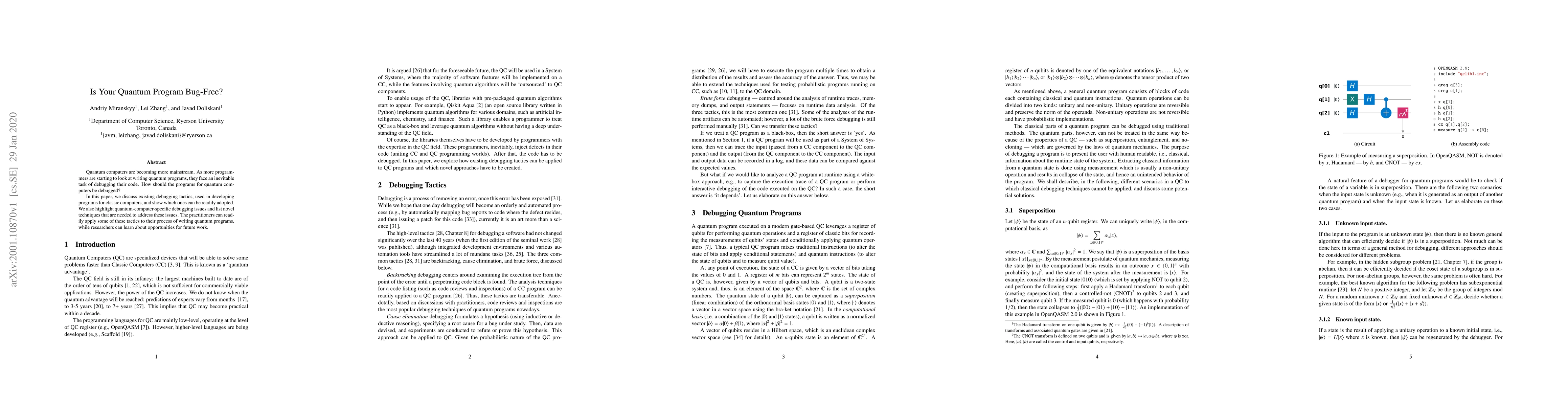 Quantum computers are becoming more mainstream. As more programmers are starting to look at writing quantum programs, they face an inevitable task of debugging their code. How should the programs for quantum computers be debugged? In this paper, we discuss existing debugging tactics, used in developing programs for classic computers, and show which ones can be readily adopted. We also highlight quantum-computer-specific debugging issues and list novel techniques that are needed to address these issues. The practitioners can readily apply some of these tactics to their process of writing quantum programs, while researchers can learn about opportunities for future work.
