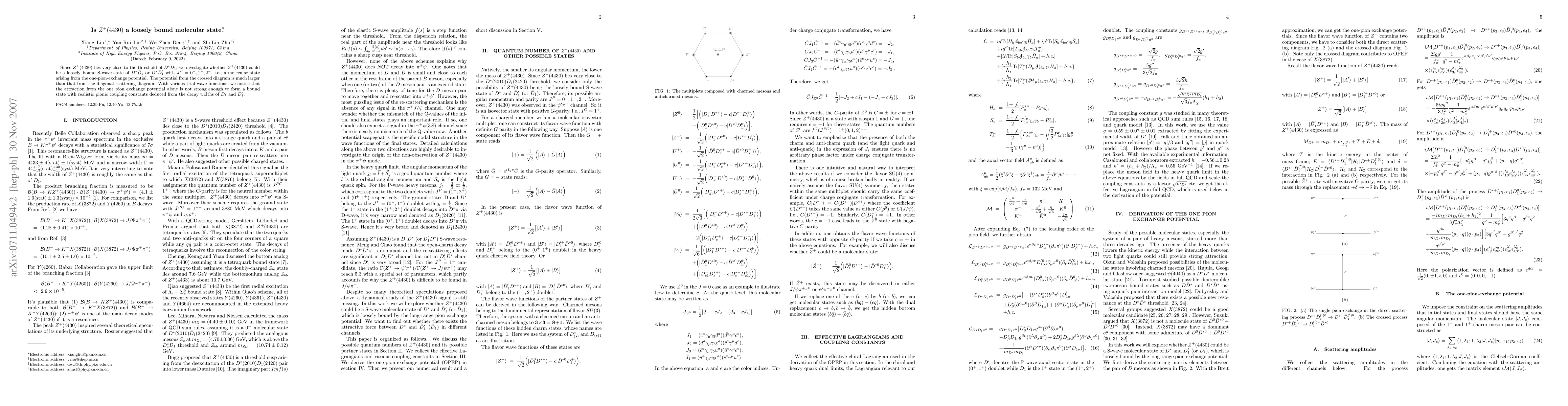 The paper investigates if $Z^+(4430)$ is a loosely bound molecular state near the $D^\ast{\bar D}_1$ threshold, finding that the one-pion-exchange potential is insufficient to form a bound state with realistic pionic coupling constants.