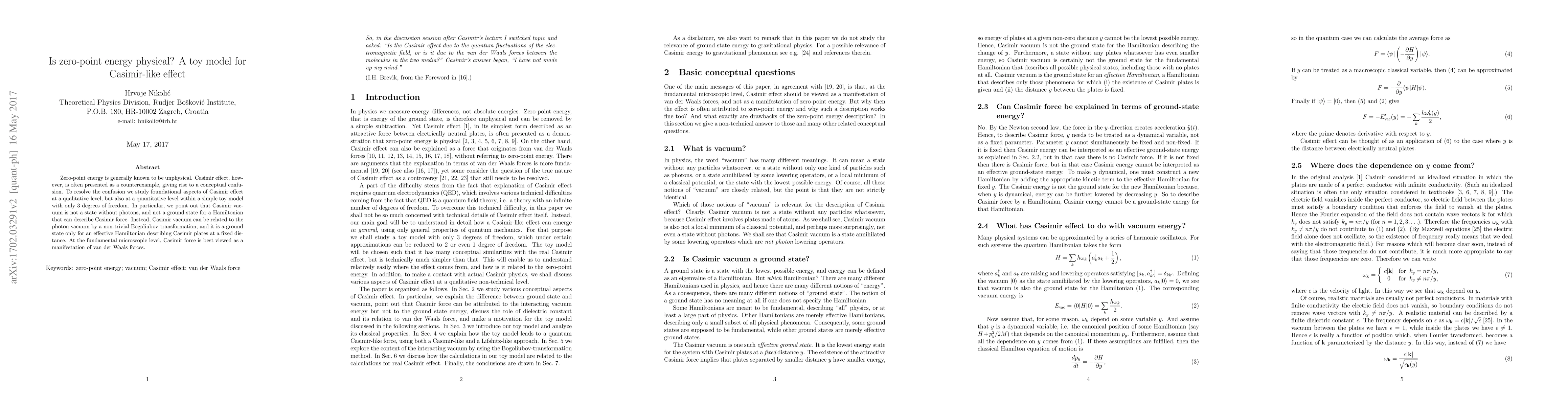 The paper argues that zero-point energy is unphysical, while the Casimir effect is often misunderstood. It uses a simple toy model to clarify that the Casimir vacuum is not devoid of photons and is a ground state only for an effective Hamiltonian, ultimately suggesting that the Casimir force is a manifestation of van der Waals forces.
