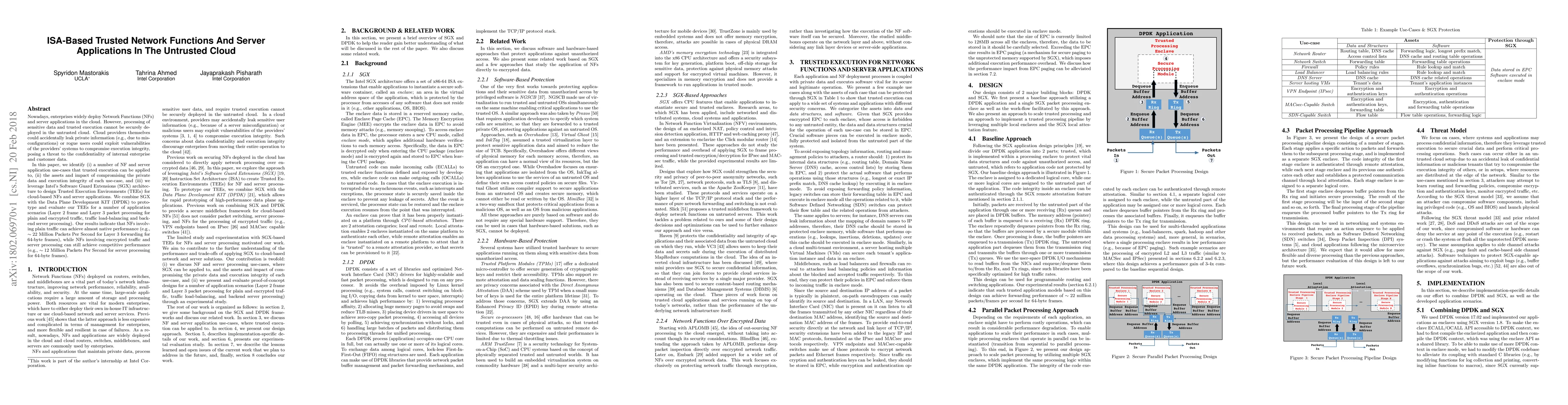 Researchers developed trusted execution environments for cloud-based network functions and server applications using Intel's Software Guard Extensions, achieving near-native performance for certain use cases.