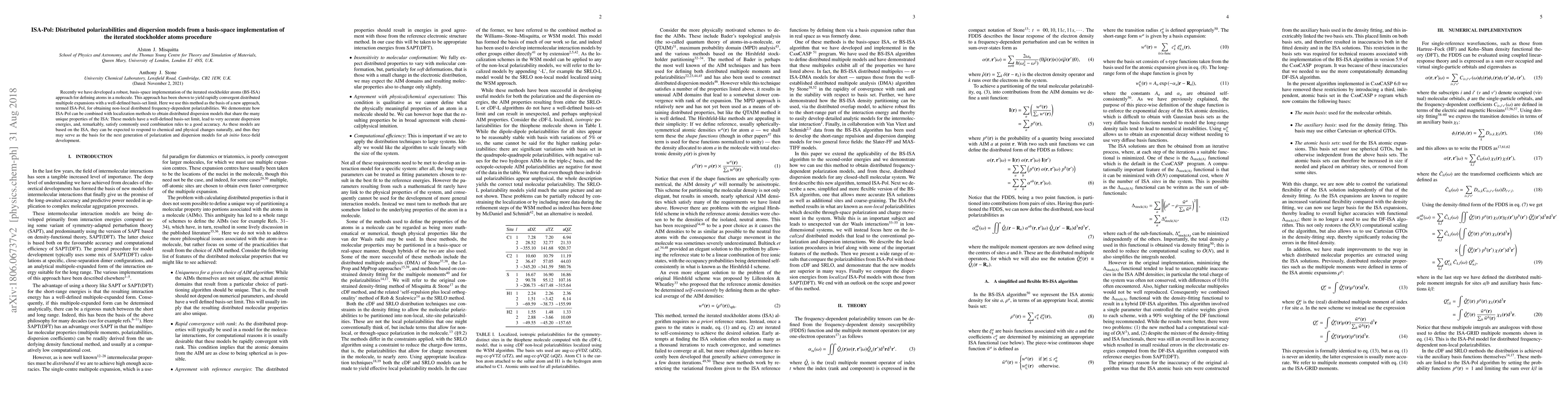 The paper introduces ISA-Pol, a method based on the basis-space implementation of the iterated stockholder atoms (BS-ISA) approach, for obtaining non-local distributed frequency-dependent polarizabilities and dispersion models. These models exhibit accurate dispersion energies and satisfy combination rules, making them promising for next-generation ab initio force-field development.