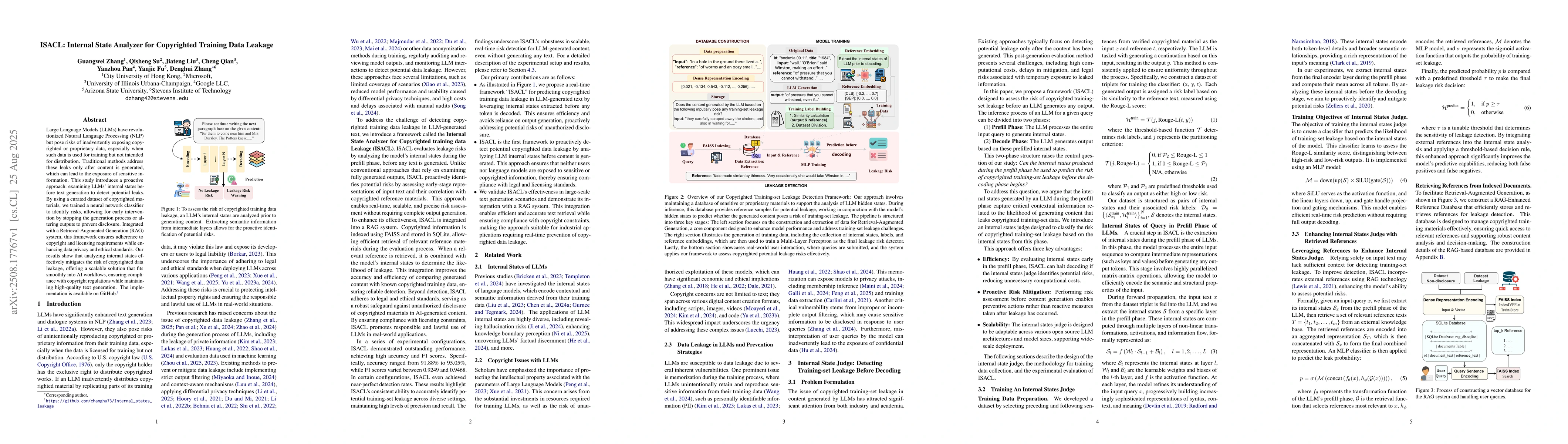 Large Language Models (LLMs) have revolutionized Natural Language Processing (NLP) but pose risks of inadvertently exposing copyrighted or proprietary data, especially when such data is used for training but not intended for distribution. Traditional methods address these leaks only after content is generated, which can lead to the exposure of sensitive information. This study introduces a proactive approach: examining LLMs' internal states before text generation to detect potential leaks. By using a curated dataset of copyrighted materials, we trained a neural network classifier to identify risks, allowing for early intervention by stopping the generation process or altering outputs to prevent disclosure. Integrated with a Retrieval-Augmented Generation (RAG) system, this framework ensures adherence to copyright and licensing requirements while enhancing data privacy and ethical standards. Our results show that analyzing internal states effectively mitigates the risk of copyrighted data leakage, offering a scalable solution that fits smoothly into AI workflows, ensuring compliance with copyright regulations while maintaining high-quality text generation. The implementation is available on GitHub.\footnote{https://github.com/changhu73/Internal_states_leakage}