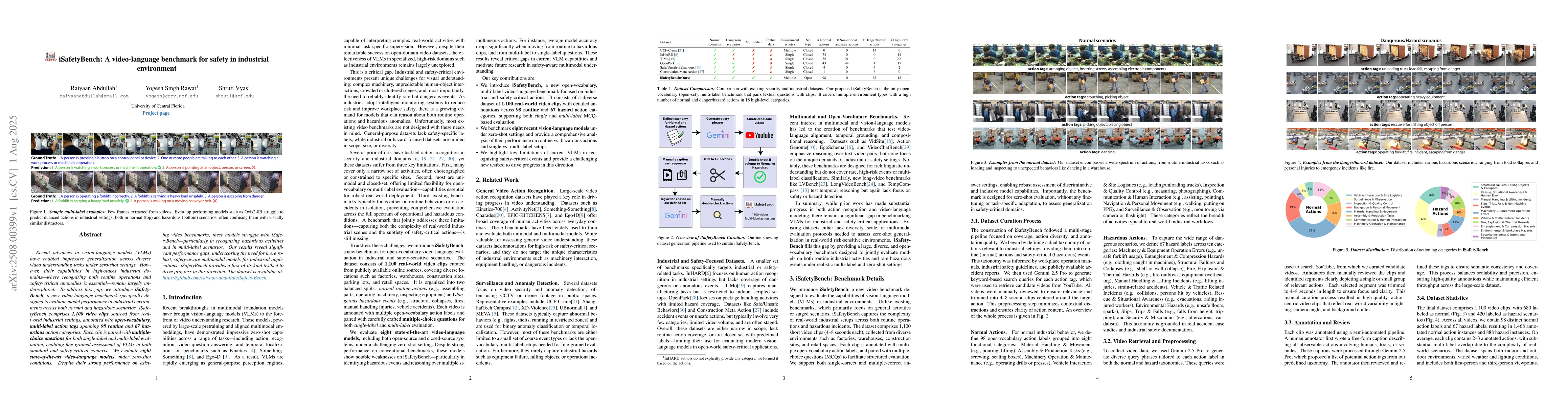 Recent advances in vision-language models (VLMs) have enabled impressive generalization across diverse video understanding tasks under zero-shot settings. However, their capabilities in high-stakes industrial domains-where recognizing both routine operations and safety-critical anomalies is essential-remain largely underexplored. To address this gap, we introduce iSafetyBench, a new video-language benchmark specifically designed to evaluate model performance in industrial environments across both normal and hazardous scenarios. iSafetyBench comprises 1,100 video clips sourced from real-world industrial settings, annotated with open-vocabulary, multi-label action tags spanning 98 routine and 67 hazardous action categories. Each clip is paired with multiple-choice questions for both single-label and multi-label evaluation, enabling fine-grained assessment of VLMs in both standard and safety-critical contexts. We evaluate eight state-of-the-art video-language models under zero-shot conditions. Despite their strong performance on existing video benchmarks, these models struggle with iSafetyBench-particularly in recognizing hazardous activities and in multi-label scenarios. Our results reveal significant performance gaps, underscoring the need for more robust, safety-aware multimodal models for industrial applications. iSafetyBench provides a first-of-its-kind testbed to drive progress in this direction. The dataset is available at: https://github.com/raiyaan-abdullah/iSafety-Bench.