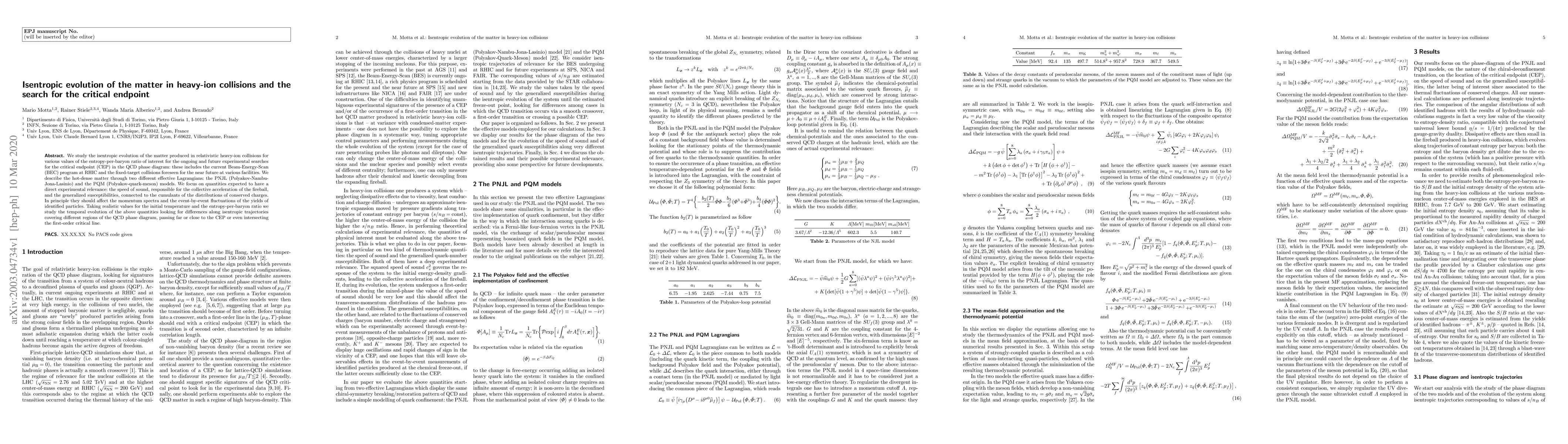 We study the isentropic evolution of the matter produced in relativistic heavy-ion collisions for various values of the entropy-per-baryon ratio of interest for the ongoing and future experimental searches for the critical endpoint (CEP) in the QCD phase diagram: these includes the current Beam-Energy-Scan (BES) program at RHIC and the fixed-target collisions foreseen for the near future at various facilities. We describe the hot-dense matter through two different effective Lagrangians: the PNJL (Polyakov-Nambu-Jona-Lasinio) and the PQM (Polyakov-quark-meson) models. We focus on quantities expected to have a direct experimental relevance: the speed of sound, responsible for the collective acceleration of the fireball, and the generalized susceptibilities, connected to the cumulants of the distributions of conserved charges. In principle, they should affect the momentum spectra and the event-by-event fluctuations of the yields of identified particles. Taking realistic values for the initial temperature and the entropy-per-baryon ratio we study the temporal evolution of the above quantities looking for differences along isentropic trajectories covering different regions of the QCD phase diagram, passing far or close to the CEP or even intersecting the first-order critical line.