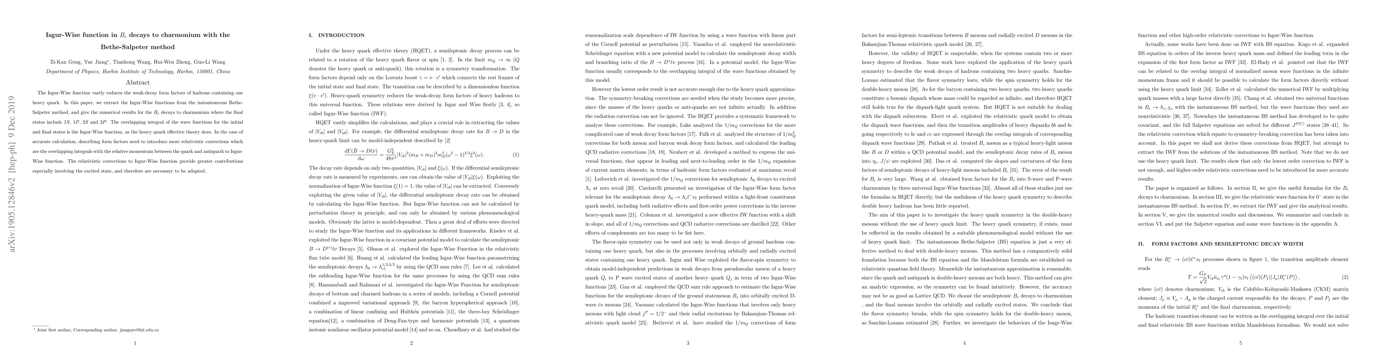 This paper extracts the Isgur-Wise function for $B_c$ decays to charmonium using the Bethe-Salpeter method, providing numerical results for transitions to $1S$, $1P$, $2S$, and $2P$ states. It emphasizes the importance of relativistic corrections to accurately describe the form factors, especially for excited states.