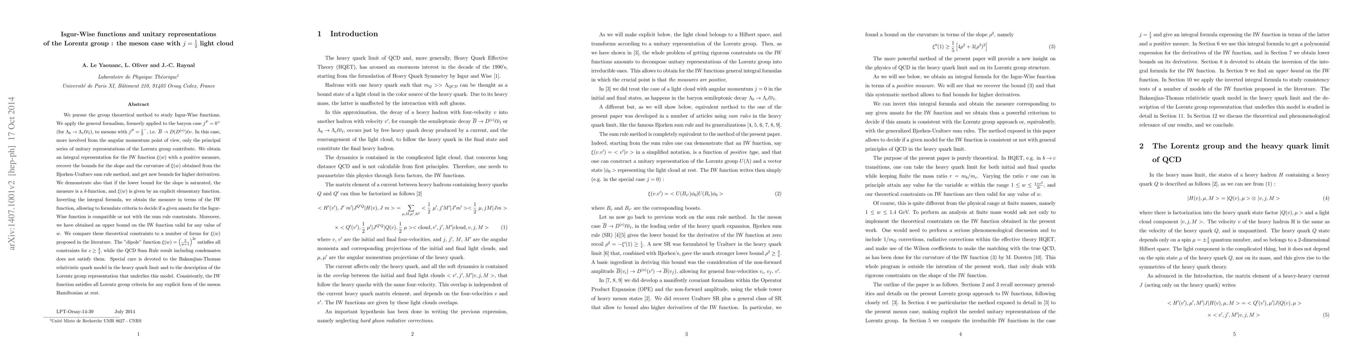 This paper applies group theoretical methods to study Isgur-Wise functions for mesons with spin j = 1/2, deriving an integral representation and obtaining bounds for the function's slope, curvature, and higher derivatives. It also proposes criteria for evaluating proposed forms of the Isgur-Wise function against theoretical constraints.