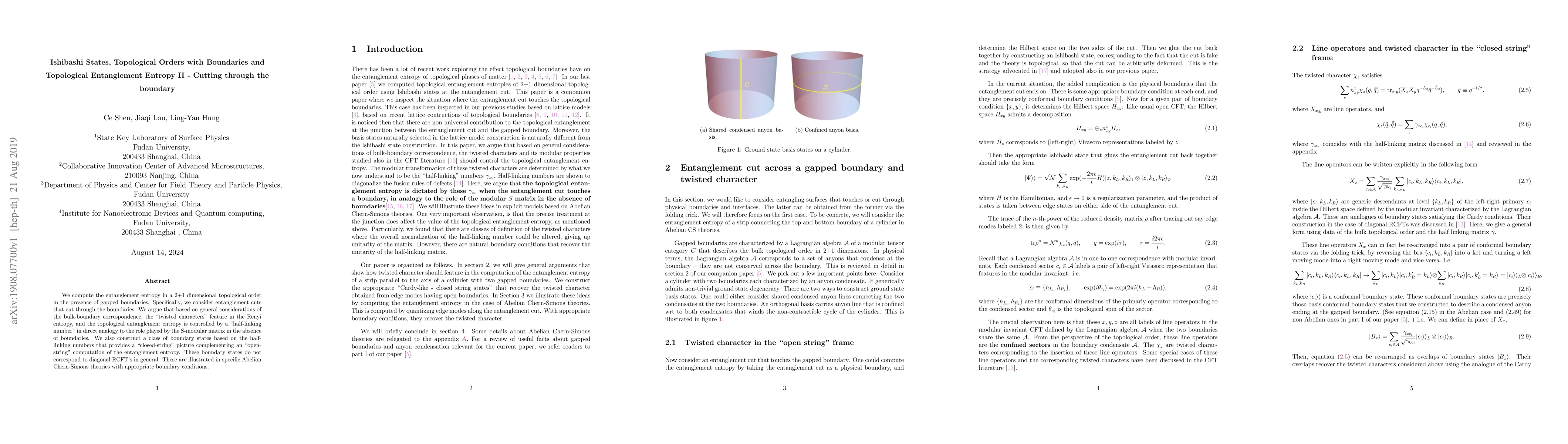 We compute the entanglement entropy in a 2+1 dimensional topological order in the presence of gapped boundaries. Specifically, we consider entanglement cuts that cut through the boundaries. We argue that based on general considerations of the bulk-boundary correspondence, the "twisted characters" feature in the Renyi entropy, and the topological entanglement entropy is controlled by a "half-linking number" in direct analogy to the role played by the S-modular matrix in the absence of boundaries. We also construct a class of boundary states based on the half-linking numbers that provides a "closed-string" picture complementing an "open-string" computation of the entanglement entropy. These boundary states do not correspond to diagonal RCFT's in general. These are illustrated in specific Abelian Chern-Simons theories with appropriate boundary conditions.