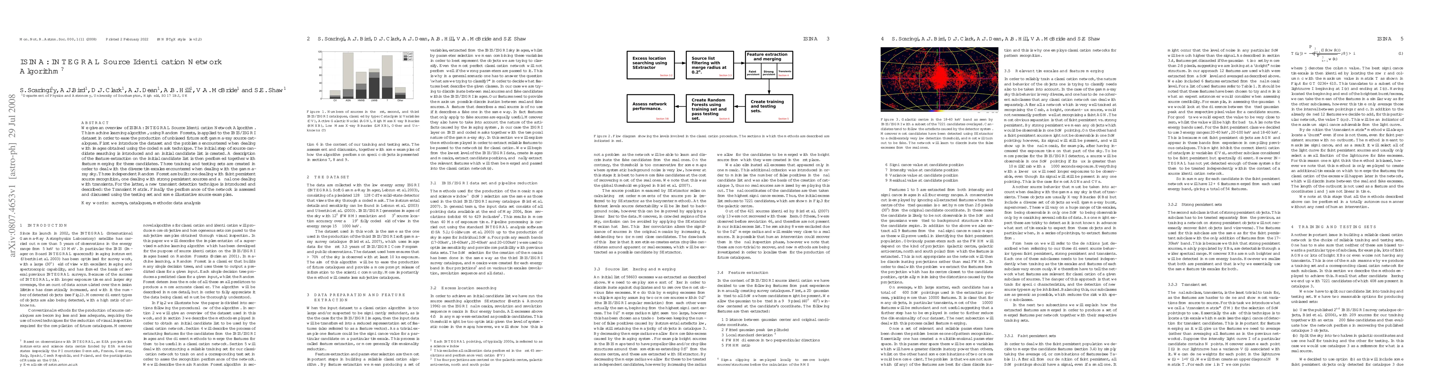 We give an overview of ISINA: INTEGRAL Source Identification Network Algorithm. This machine learning algorithm, using Random Forests, is applied to the IBIS/ISGRI dataset in order to ease the production of unbiased future soft gamma-ray source catalogues. First we introduce the dataset and the problems encountered when dealing with images obtained using the coded mask technique. The initial step of source candidate searching is introduced and an initial candidate list is created. A description of the feature extraction on the initial candidate list is then performed together with feature merging for these candidates. Three training and testing sets are created in order to deal with the diverse timescales encountered when dealing with the gamma-ray sky. Three independent Random Forest are built: one dealing with faint persistent source recognition, one dealing with strong persistent sources and a final one dealing with transients. For the latter, a new transient detection technique is introduced and described: the Transient Matrix. Finally the performance of the network is assessed and discussed using the testing set and some illustrative source examples.