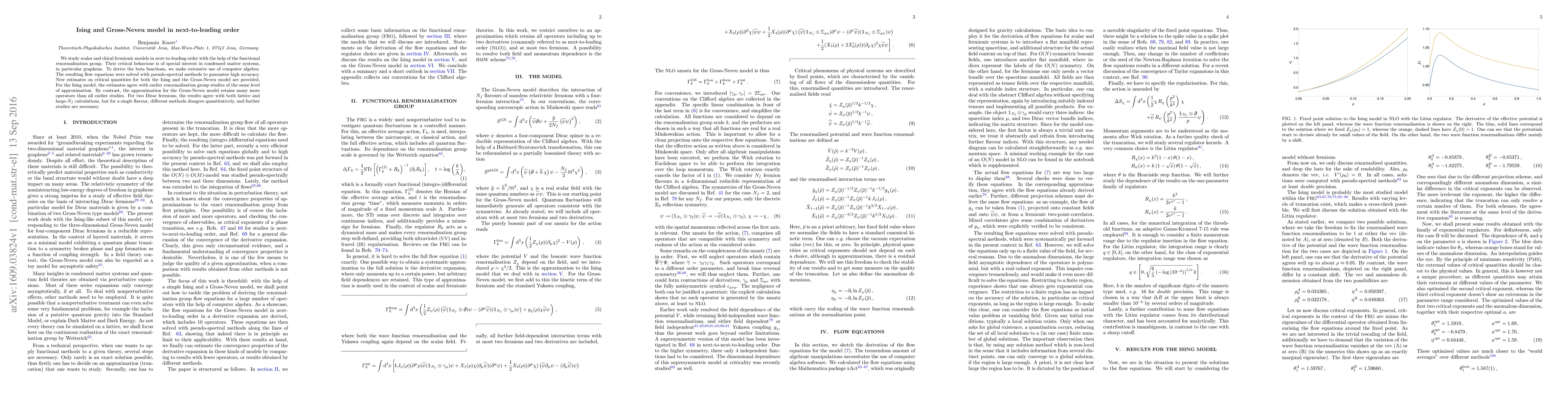 This paper uses functional renormalisation group to study critical behavior of scalar and chiral fermionic models in next-to-leading order, providing new estimates for critical quantities in the Ising and Gross-Neveu models.