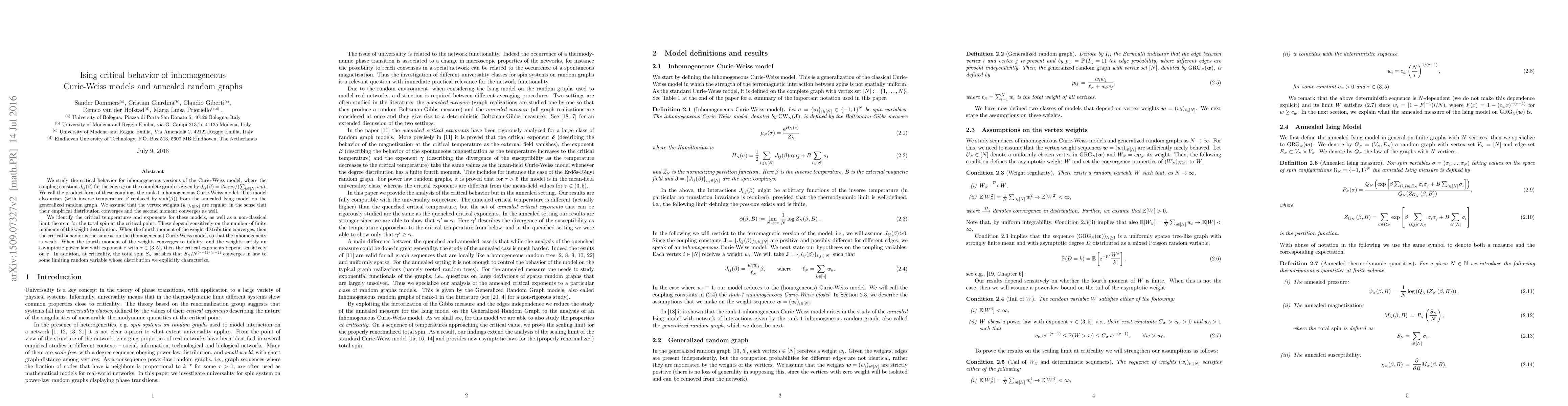 The paper introduces a detailed mathematical framework for analyzing inhomogeneous Curie-Weiss models and their equivalence to annealed Ising models on generalized random graphs, identifying critical temperatures, exponents, and a non-classical limit theorem.