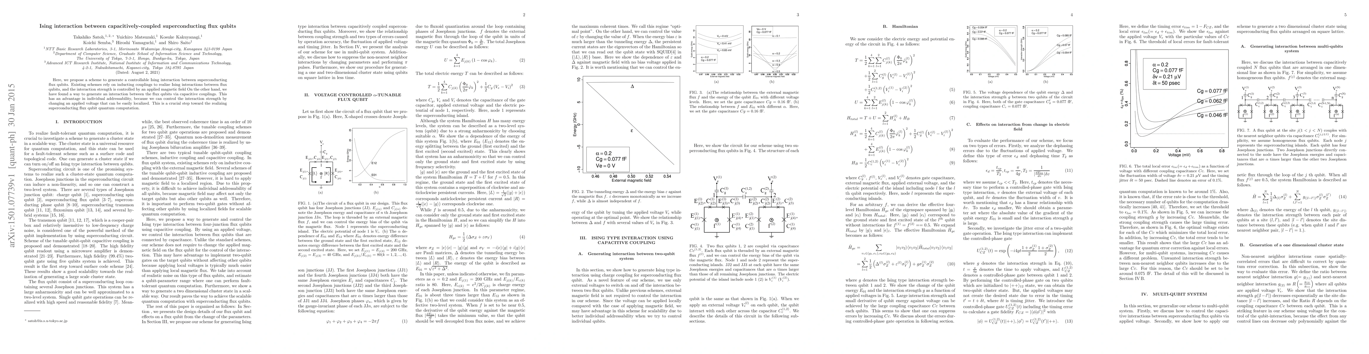 This paper proposes a method to generate a controllable Ising interaction between superconducting flux qubits using capacitive coupling instead of inductive coupling, allowing interaction strength control via localized voltage changes for individual addressability. This approach is a significant step towards realizing quantum computation with superconducting flux qubits.