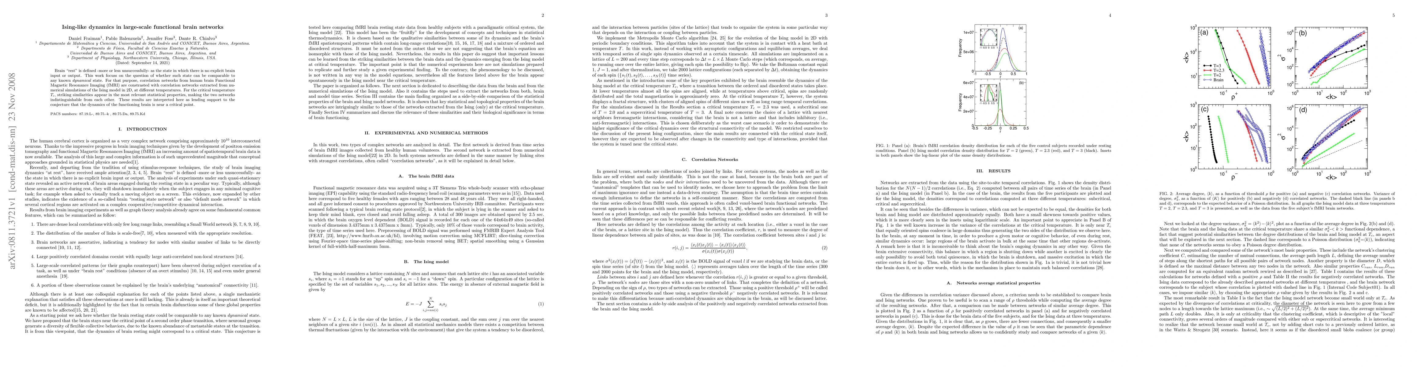 This study investigates whether the resting state of the human brain exhibits dynamics similar to the Ising model, a theoretical framework for phase transitions. By comparing fMRI-derived brain networks with Ising model simulations, the researchers find striking similarities at the critical temperature, suggesting that brain dynamics may operate near a critical point.