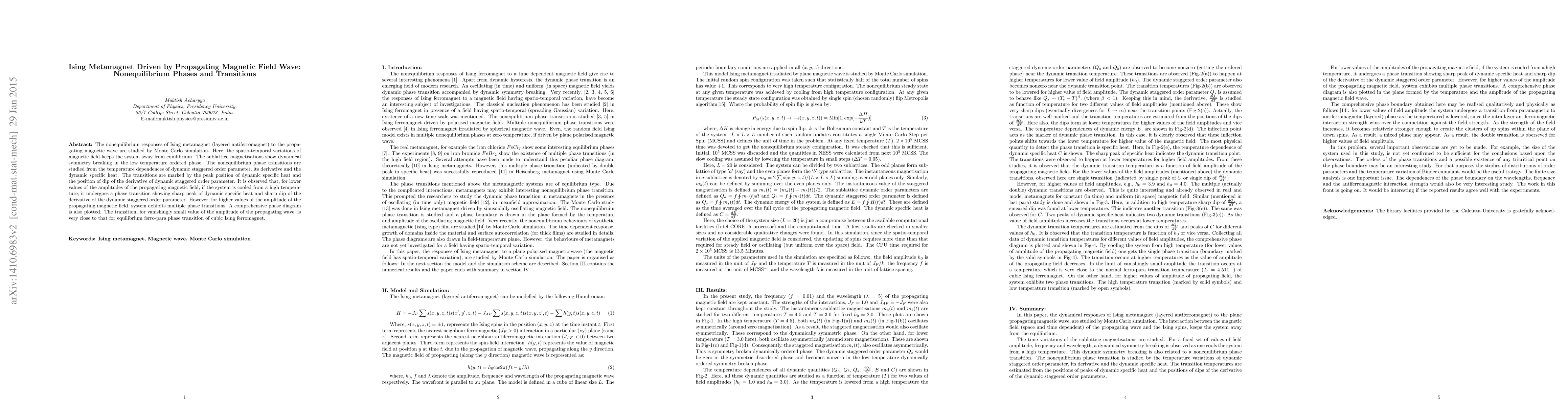 This paper investigates the nonequilibrium dynamics of an Ising metamagnet under a propagating magnetic field using Monte Carlo simulations. It finds that the system exhibits multiple phase transitions at higher magnetic field amplitudes, while lower amplitudes lead to a single transition akin to the equilibrium ferro-para phase transition.