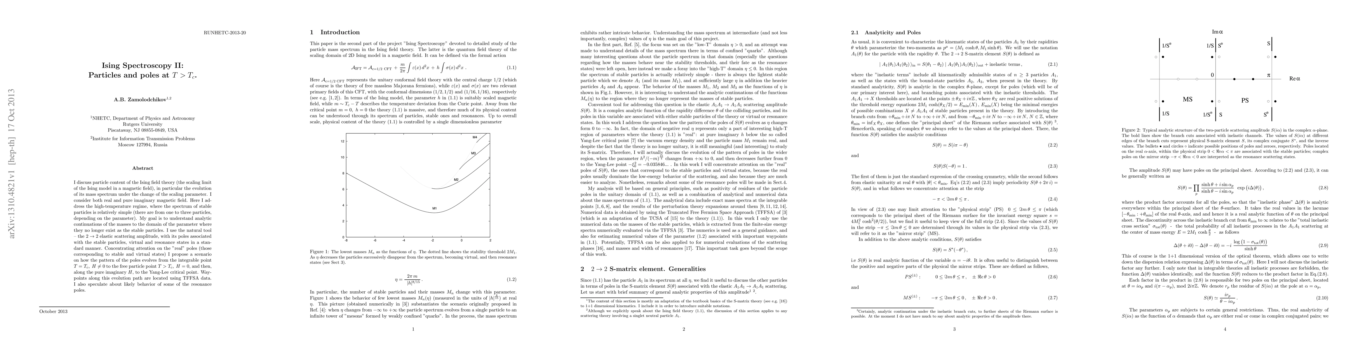 Researchers investigate how particles and poles in the Ising field theory change as temperature increases, from a state with stable particles to free particles, and along the imaginary axis of the magnetic field, aiming to understand its behavior and implications.