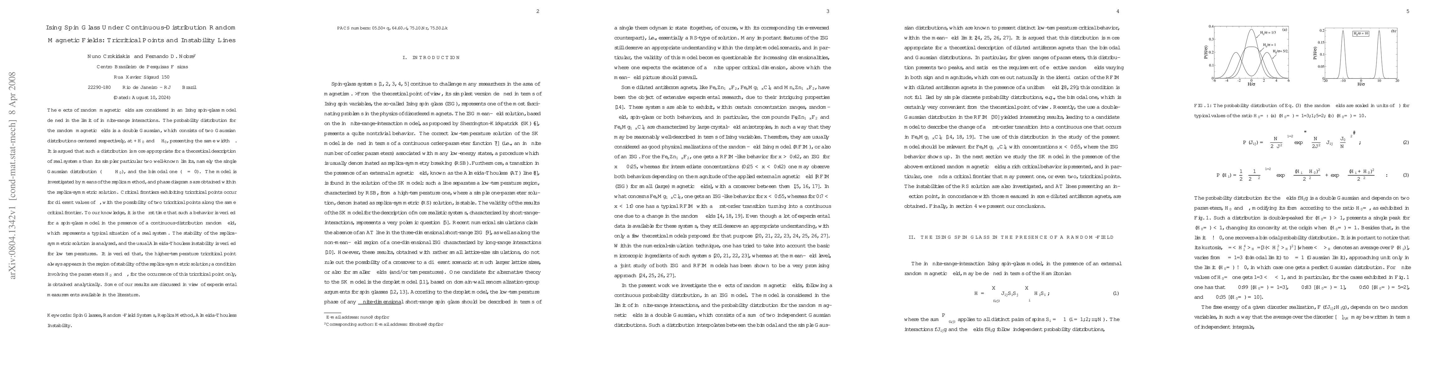 Researchers studied an Ising spin-glass model with continuous-distribution random magnetic fields, finding tricritical points and instability lines that have implications for real-world systems.