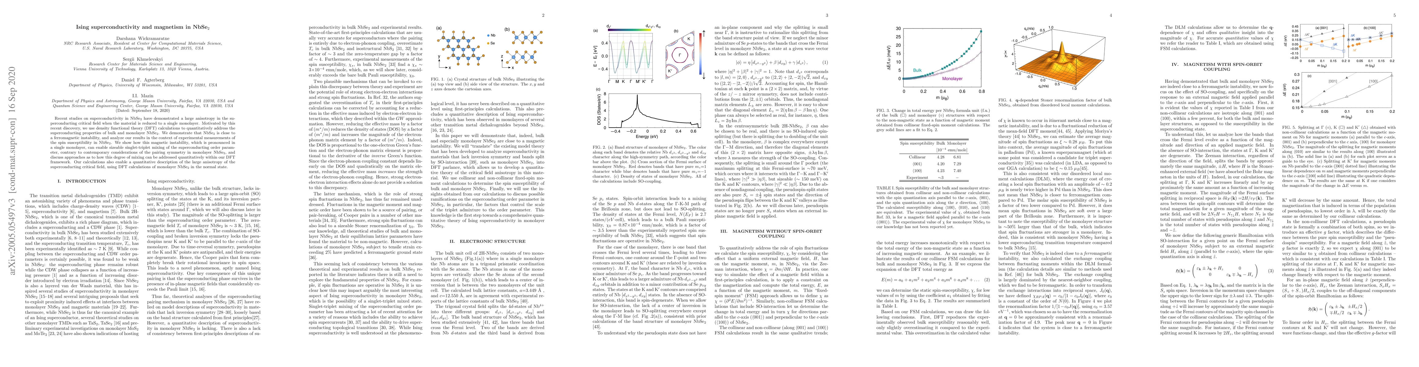 Recent studies on superconductivity in NbSe$_2$ have demonstrated a large anisotropy in the superconducting critical field when the material is reduced to a single monolayer. Motivated by this recent discovery, we use density functional theory (DFT) calculations to quantitatively address the superconducting properties of bulk and monolayer NbSe$_2$. We demonstrate that NbSe$_2$ is close to a ferromagnetic instability, and analyze our results in the context of experimental measurements of the spin susceptibility in NbSe$_2$. We show how this magnetic instability, which is pronounced in a single monolayer, can enable sizeable singlet-triplet mixing of the superconducting order parameter, contrary to contemporary considerations of the pairing symmetry in monolayer NbSe$_2$, and discuss approaches as to how this degree of mixing can be addressed quantitatively within our DFT framework. Our calculations also enable a quantitative description of the large anisotropy of the superconducting critical field, using DFT calculations of monolayer NbSe$_2$ in the normal state
