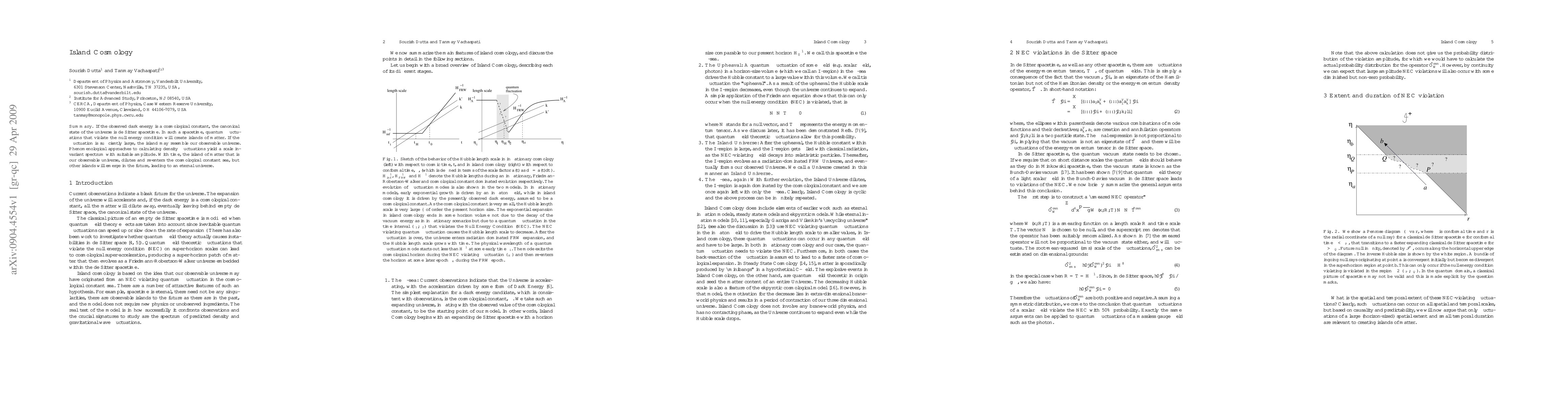 Title: Island Cosmology Summary: This paper explores the possibility of our universe as an island of matter formed from quantum fluctuations in a de Sitter spacetime, eventually re-entering a cosmological constant sea, suggesting a scale-invariant spectrum for density fluctuations.
