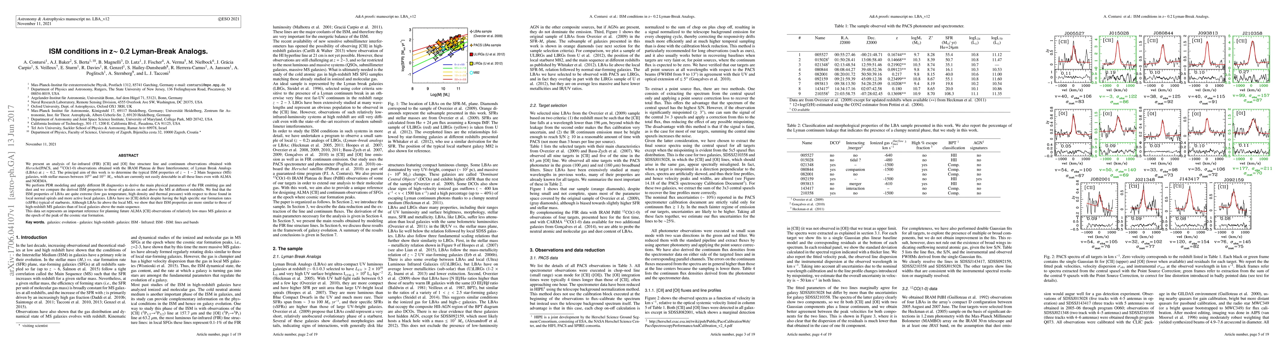 This study analyzes the ISM properties of Lyman Break Analogs (LBAs) at $z\sim 0.2$ using FIR and CO observations, finding extreme ISM conditions such as low gas temperatures, high densities, and pressures. The LBAs exhibit ISM characteristics more akin to high-redshift star-forming galaxies than to local starburst galaxies.