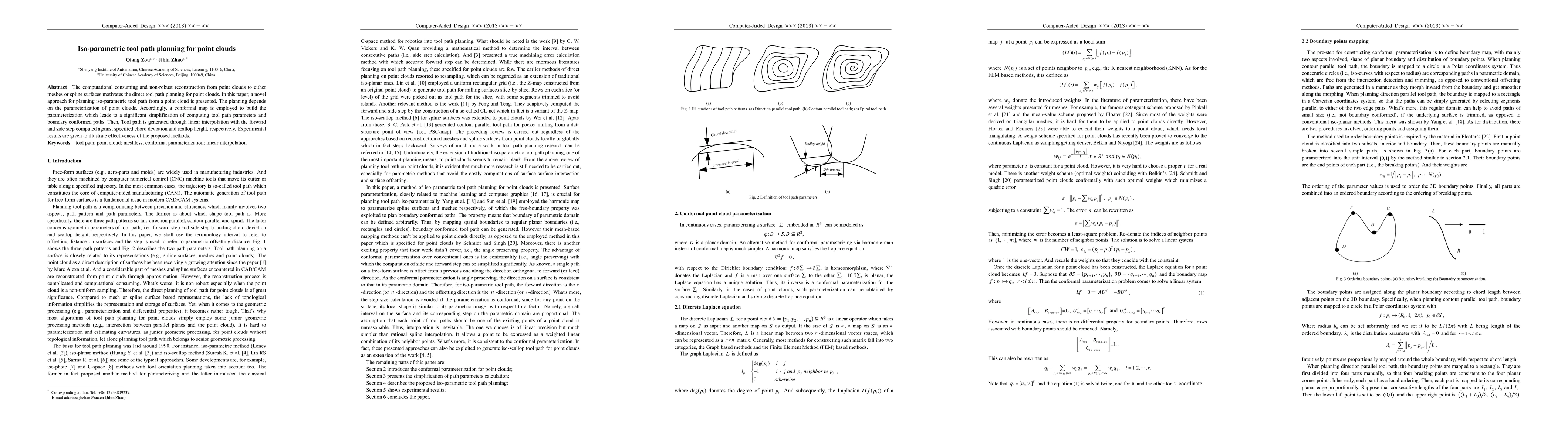 This paper introduces a novel method for planning iso-parametric tool paths directly from point clouds using conformal map parameterization, simplifying computation and ensuring boundary conformity. Experimental results demonstrate the effectiveness of the proposed method in generating efficient tool paths.