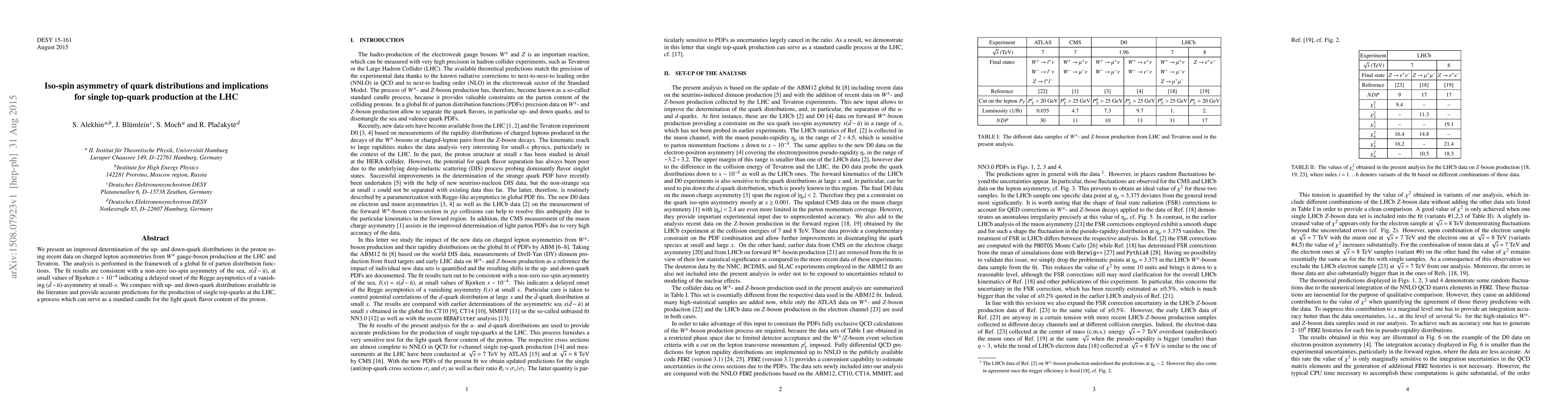 This study refines the understanding of up- and down-quark distributions in protons using LHC and Tevatron $W^pm$ data, revealing a non-zero isospin asymmetry at very small Bjorken x. This finding suggests a delayed transition to vanishing asymmetry at small x, impacting single top-quark production predictions at the LHC, which can validate proton flavor content insights.