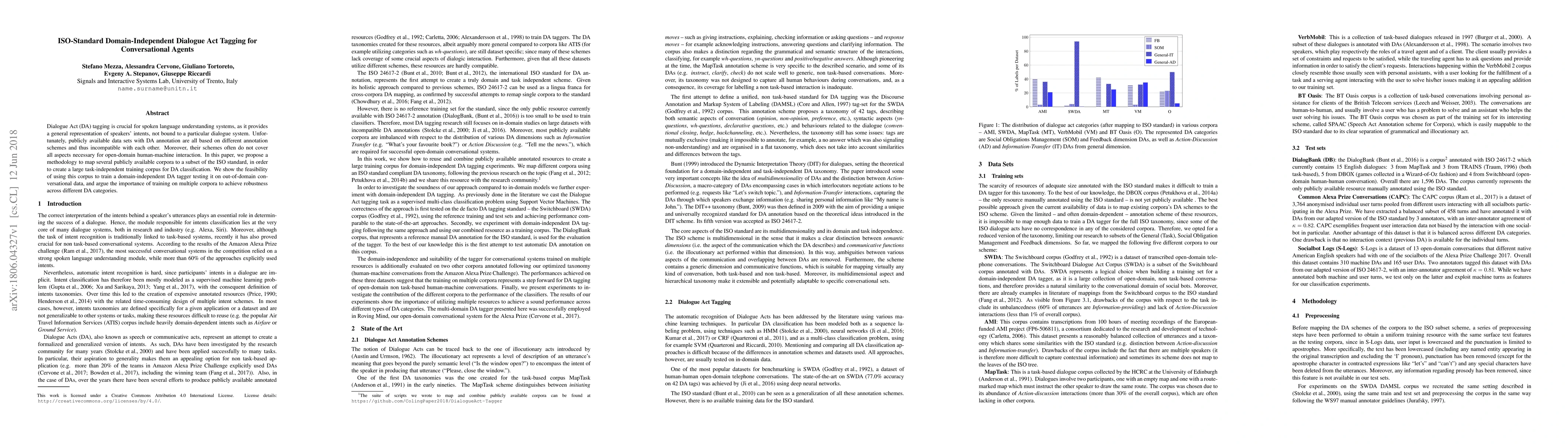 This paper proposes a methodology to standardize and consolidate various dialogue act annotation schemes into a subset of the ISO standard, creating a domain-independent training corpus. The study demonstrates the effectiveness of this corpus in training a robust domain-independent dialogue act tagger, emphasizing the importance of multi-corpus training for better generalization.