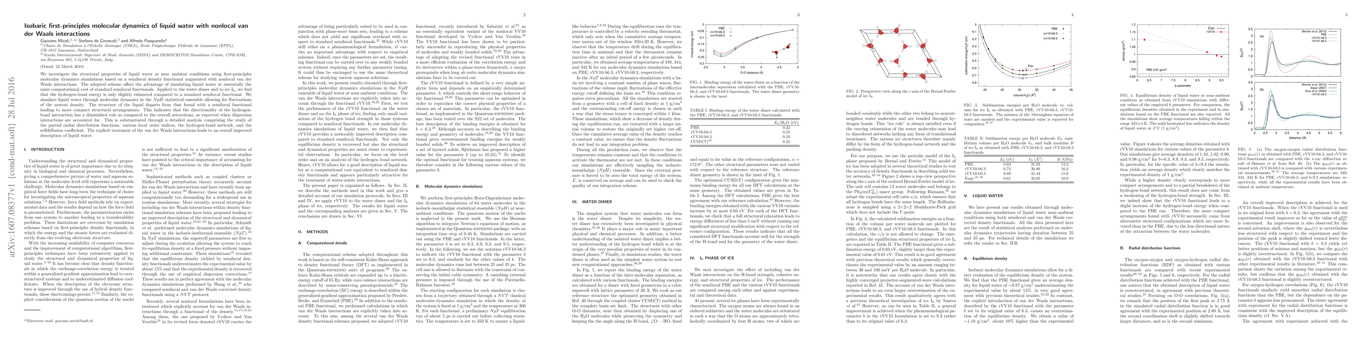 This paper explores the structural properties of liquid water using first-principles molecular dynamics simulations that incorporate nonlocal van der Waals interactions. The study finds that accounting for these interactions leads to a more compact liquid structure and enhances the understanding of hydrogen-bond dynamics, resulting in a better overall description of liquid water.