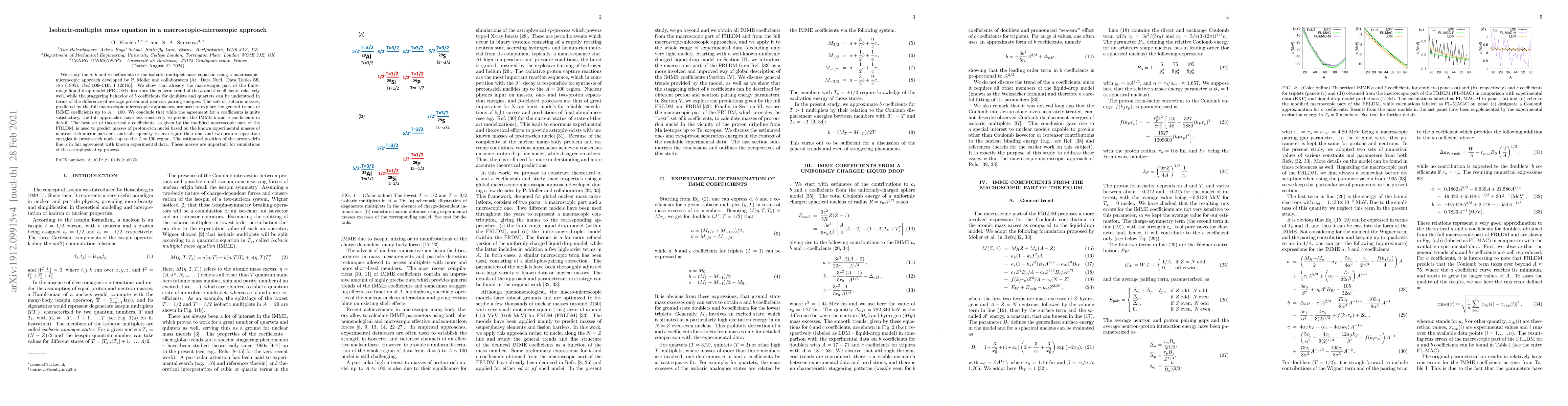We study the a, b and c coefficients of the isobaric-multiplet mass equation using a macroscopic-microscopic approach developed by P. Moeller and his collaborators in ADNDT 59, 185 (1995) and ADNDT 109-110, 1 (2016). We show that already the macroscopic part of the finite-range liquid-drop model (FRLDM) describes the general trend of the a and b coefficients relatively well, while the staggering behavior of b coefficients for doublets and quartets can be understood in terms of the difference of average proton and neutron pairing energies. The sets of isobaric masses, predicted by the full macroscopic-microscopic approaches, are used to explore the general trends of IMME coefficients up to A=100. We conclude that while the agreement for a coefficients is quite satisfactory, the global approaches have less sensitivity to predict the staggering pattern observed for b coefficients of doublets and quartets. The best set of theoretical b coefficients for multiplets up to about A=100 is used to predict masses of proton-rich nuclei based on the known experimental masses of neutron-rich mirror partners, and subsequently to investigate their one- and two-proton separation energies. The estimated position of the proton-drip line is in fair agreement with known experimental data. These masses are important for simulations of the astrophysical rp-process.