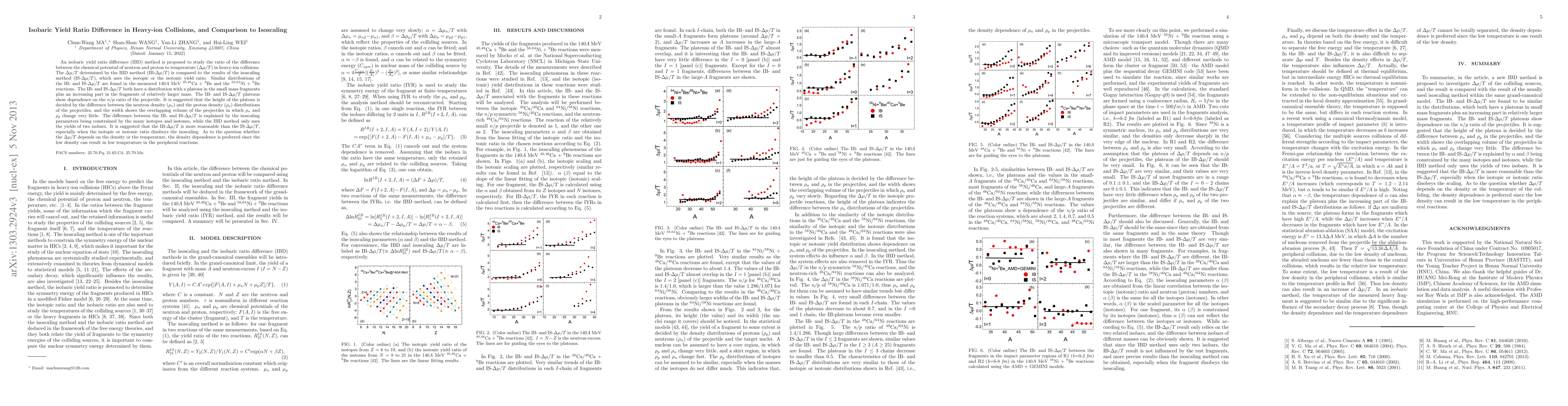 The paper proposes an isobaric yield ratio difference (IBD) method to study the $\Delta\mu/T$ in heavy-ion collisions and compares it to the isoscaling method. Both IBD and isoscaling show similar distributions in measured reactions, suggesting that the IBD method may provide a more reliable $\Delta\mu/T$ when isotopic or isotonic ratios deviate from isoscaling, favoring density dependence over temperature.