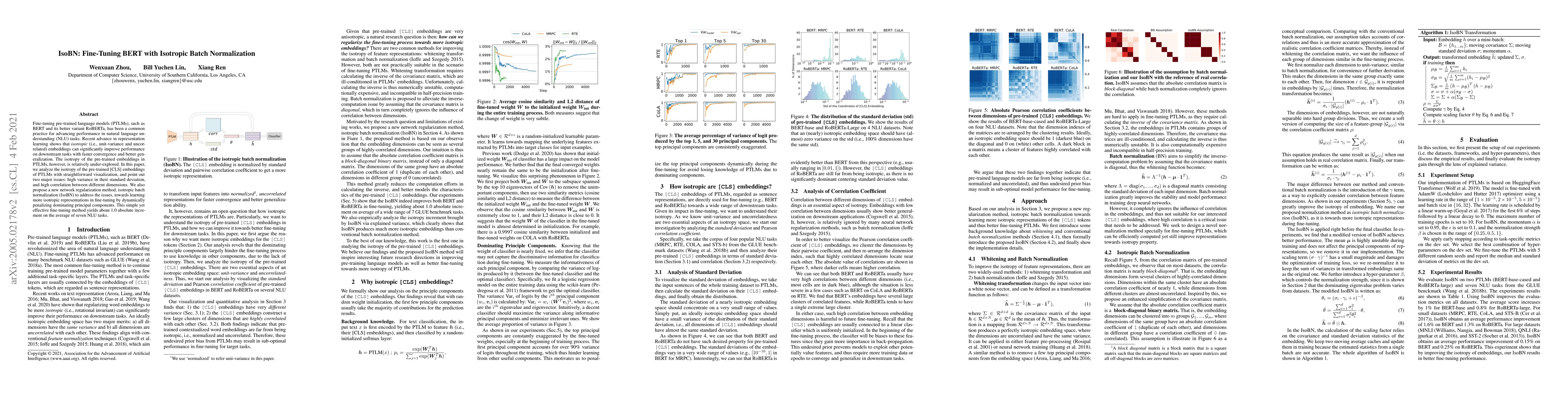 This paper introduces isotropic batch normalization (IsoBN) to enhance the isotropy of pre-trained language model embeddings during fine-tuning, addressing high variance and correlation issues in [CLS] embeddings. IsoBN achieves a notable 1.0 average improvement across seven natural language understanding tasks.