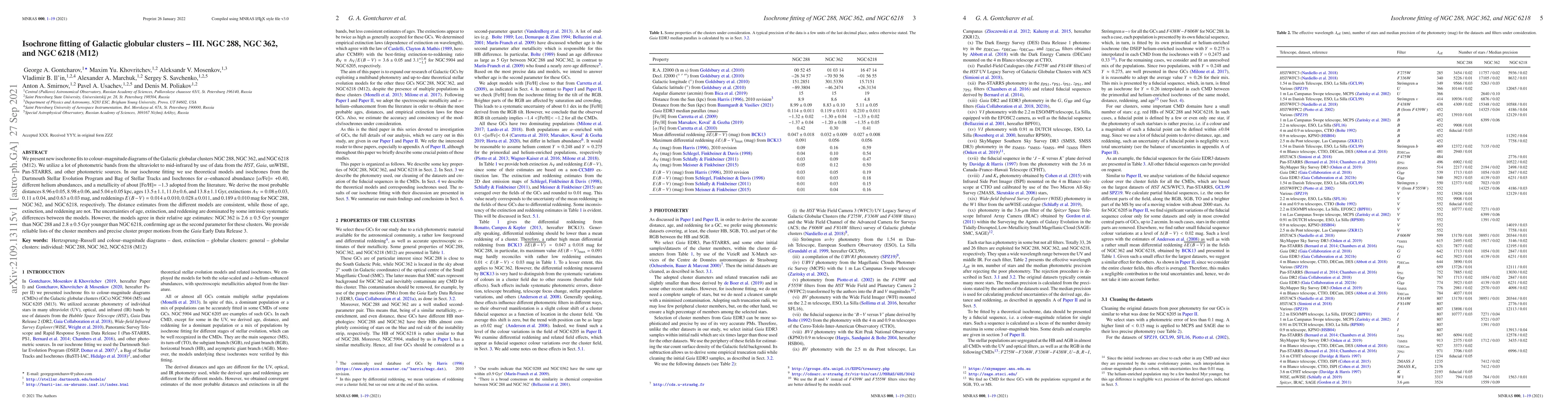 This paper presents new isochrone fits for three Galactic globular clusters, NGC\,288, NGC\,362, and NGC\,6218, using extensive photometric data from various sources. The study derives probable distances, ages, extinctions, and reddenings, finding NGC\,362 to be younger than the other clusters, confirming age as the second parameter for these clusters.