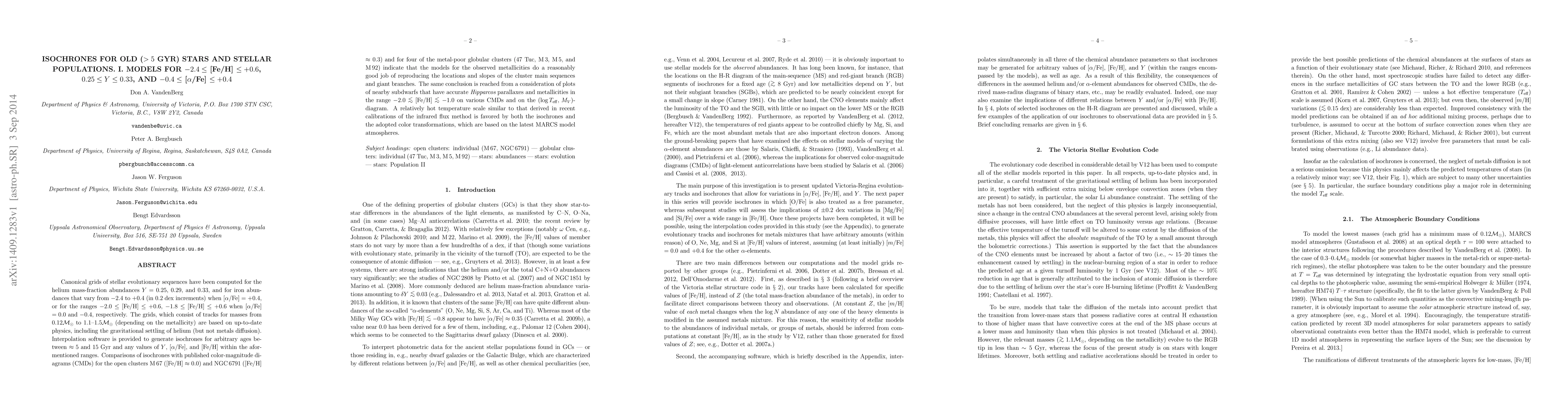 Canonical grids of stellar evolutionary sequences have been computed for the helium mass-fraction abundances $Y = 0.25$, $0.29$, and $0.33$, and for iron abundances that vary from $-2.4$ to $+0.4$ (in 0.2 dex increments) when [$\alpha$/Fe] $= +0.4$, or for the ranges $-2.0 \le$ [Fe/H] $\le +0.6$, $-1.8 \le$ [Fe/H] $\le +0.6$ when [$\alpha$/Fe] $= 0.0$ and $-0.4$, respectively. The grids, which consist of tracks for masses from $0.12 {{\cal M}_\odot}$ to $1.1$-$1.5 {{\cal M}_\odot}$ (depending on the metallicity) are based on up-to-date physics, including the gravitational settling of helium (but not metals diffusion). Interpolation software is provided to generate isochrones for arbitrary ages between $\approx 5$ and $15$ Gyr and any values of $Y$, [$\alpha$/Fe], and [Fe/H] within the aforementioned ranges. Comparisons of isochrones with published color-magnitude diagrams (CMDs) for the open clusters M67 ([Fe/H] $\approx 0.0$) and NGC 6791 ([Fe/H] $\approx 0.3$) and for four of the metal-poor globular clusters (47 Tuc, M3, M5, and M92) indicate that the models for the observed metallicities do a reasonably good job of reproducing the locations and slopes of the cluster main sequences and giant branches. The same conclusion is reached from a consideration of plots of nearby subdwarfs that have accurate Hipparcos parallaxes and metallicities in the range $-2.0 \le$ [Fe/H] $\le -1.0$ on various CMDs and on the ($\log T_{\rm eff},\,M_V$)-diagram. A relatively hot temperature scale similar to that derived in recent calibrations of the infrared flux method is favored by both the isochrones and the adopted color transformations, which are based on the latest MARCS model atmospheres.