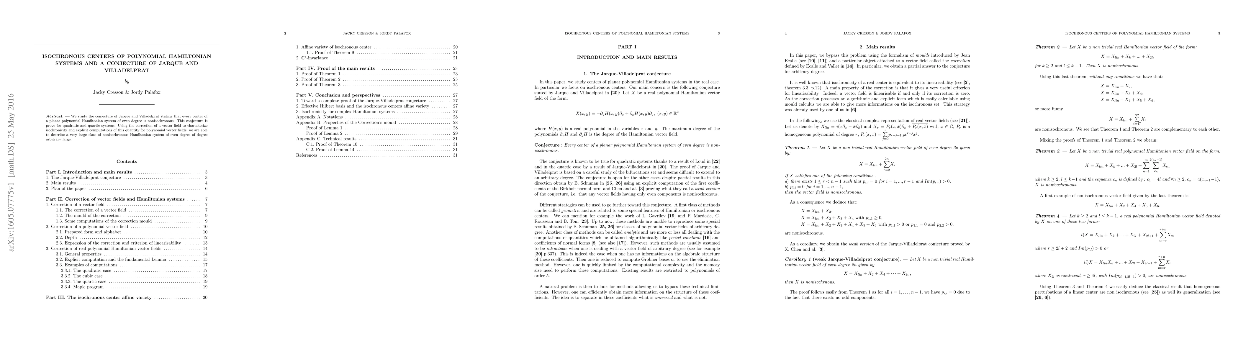 We study the conjecture of Jarque and Villadelprat stating that every center of a planar polynomial Hamiltonian system of even degree is nonisochronous. This conjecture is proved for quadratic and quartic systems. Using the correction of a vector field to characterize isochronicity and explicit computations of this quantity for polynomial vector fields, wa are able to describe a very large class of nonisochronous Hamiltonian system of even degree of degree arbitrary large.