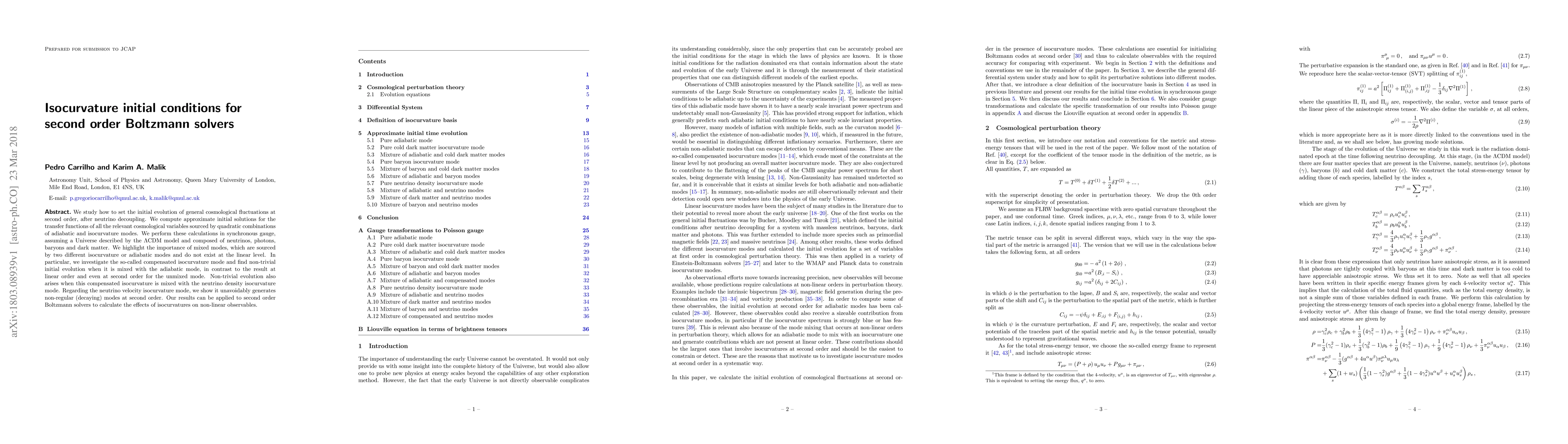 Researchers studied how to set initial conditions for cosmological fluctuations in a universe with neutrinos, photons, baryons, and dark matter, finding that mixed modes can produce non-trivial evolution in second-order Boltzmann solvers.