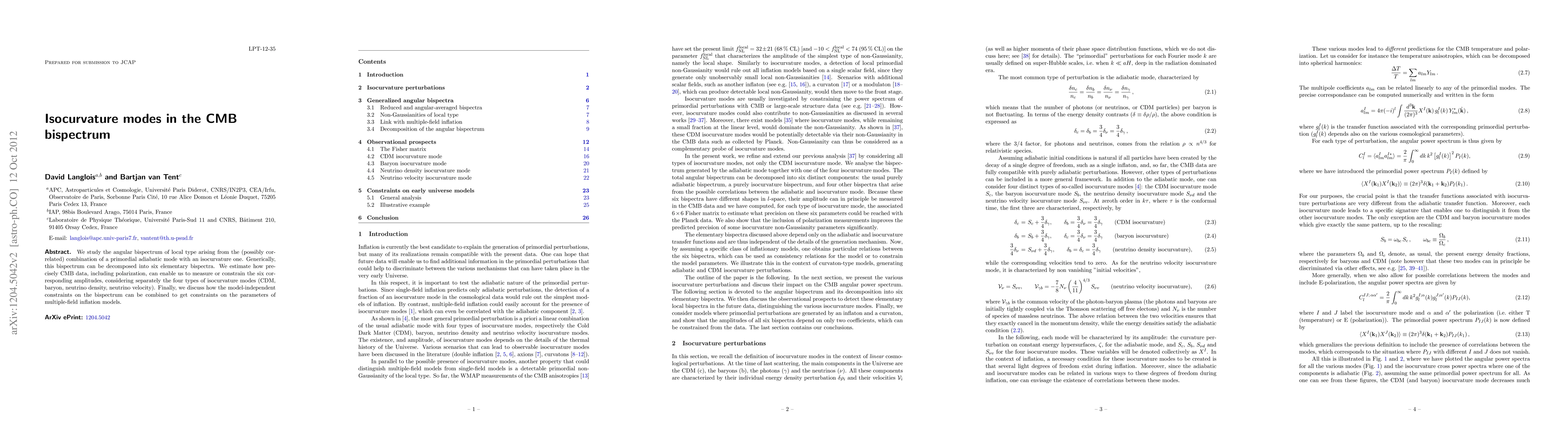 This paper investigates the angular bispectrum from a combination of primordial adiabatic and isocurvature modes in the Cosmic Microwave Background (CMB), estimating the precision of CMB data in measuring six corresponding amplitudes for different isocurvature types. It also explores how these model-independent bispectrum constraints can inform multiple-field inflation models.
