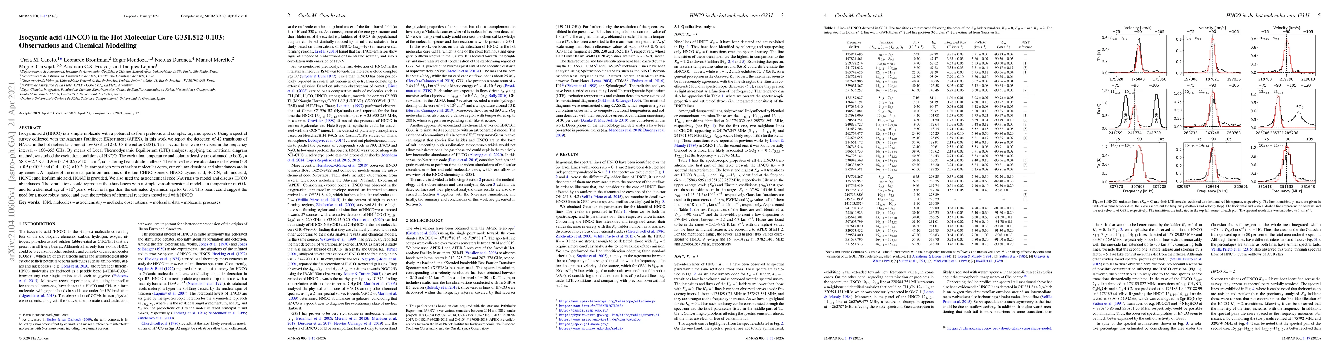 The paper reports the detection of isocyanic acid (HNCO) in the hot molecular core G331.512-0.103 using APEX observations, estimating its excitation temperature, column density, and abundance. LTE analyses and Nautilus astrochemical modeling suggest a chemical age of ~10^5 years, indicating potential discrepancies in current HNCO chemical reaction models.