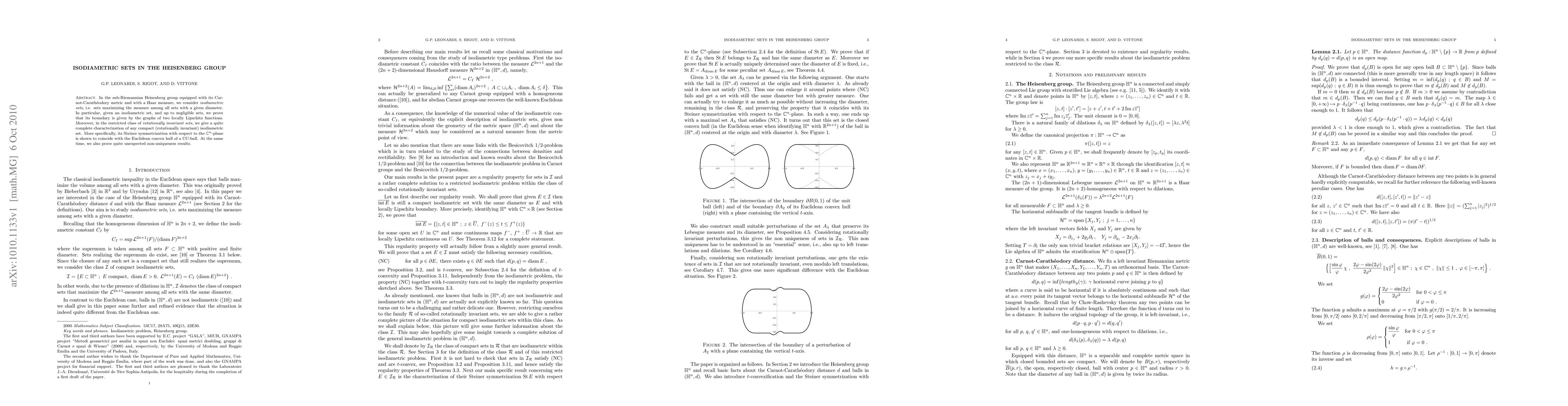 This research paper in the Heisenberg group, a specific mathematical structure, identifies that isodiametric sets (sets with maximal measure for a given diameter) have boundaries described by locally Lipschitz functions. It also characterizes compact, rotationally invariant isodiametric sets, showing their Steiner symmetrization equals the Euclidean convex hull of a Carnot-Caratheodory ball. Surprisingly, it also reveals non-uniqueness in these sets.
