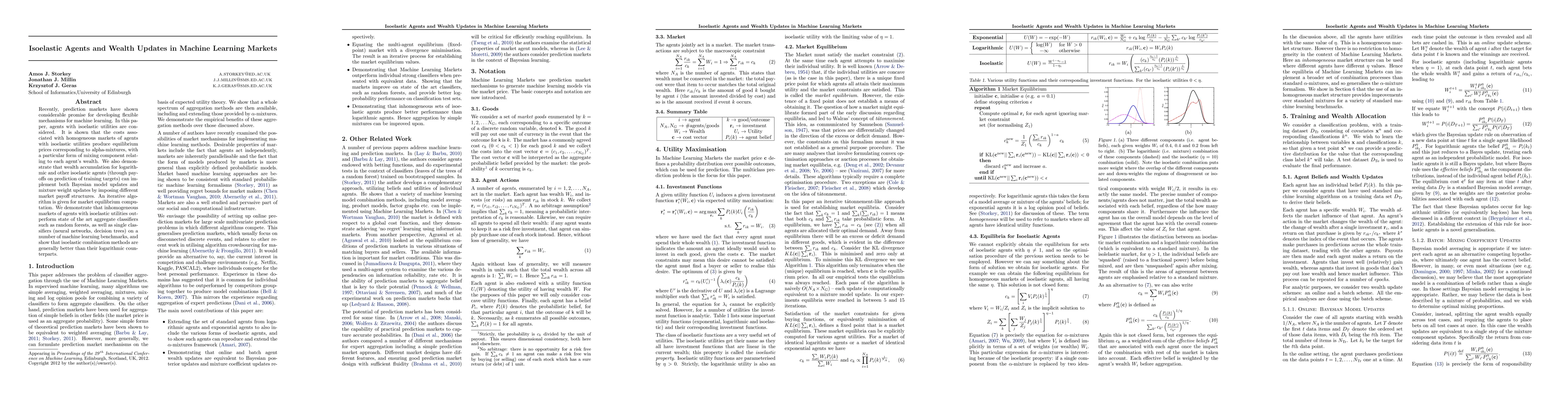 This paper explores prediction markets with isoelastic utility agents, demonstrating that equilibrium prices correspond to alpha-mixtures influenced by agents' wealth. It shows that wealth updates can implement Bayesian and mixture weight updates, and proposes an iterative algorithm for equilibrium computation, ultimately finding that inhomogeneous markets outperform state-of-the-art classifiers on various benchmarks.