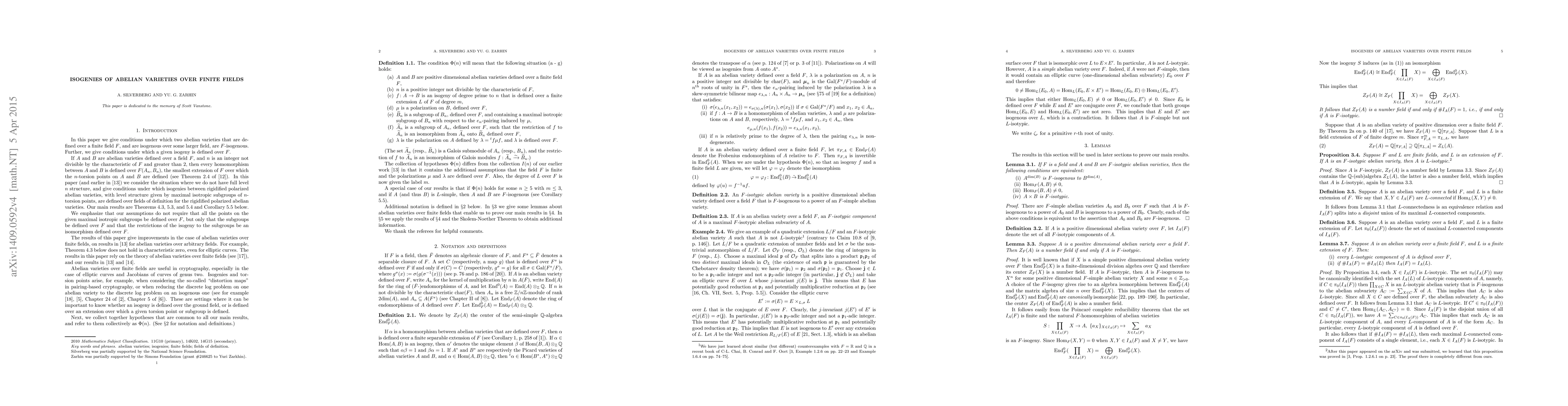 This paper establishes criteria for determining when two abelian varieties, defined over a finite field $F$ and isogenous over a larger field, are $F$-isogenous and provides conditions for the isogeny to be defined over $F$.