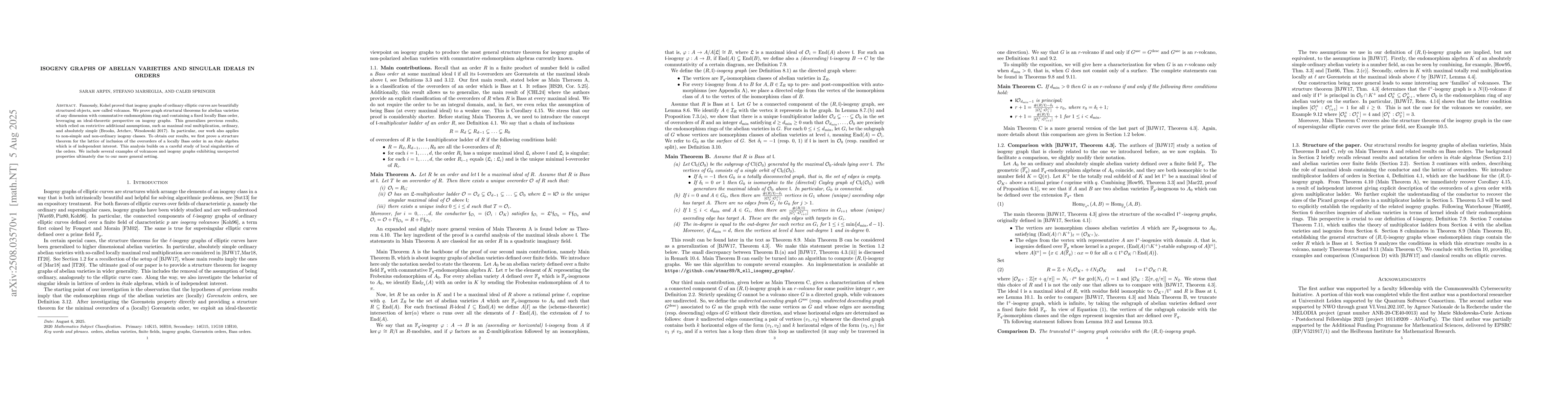 Famously, Kohel proved that isogeny graphs of ordinary elliptic curves are beautifully structured objects, now called volcanos. We prove graph structural theorems for abelian varieties of any dimension with commutative endomorphism ring and containing a fixed locally Bass order, leveraging an ideal-theoretic perspective on isogeny graphs. This generalizes previous results, which relied on restrictive additional assumptions, such as maximal real multiplication, ordinary, and absolutely simple (Brooks, Jetchev, Wesolowski 2017). In particular, our work also applies to non-simple and non-ordinary isogeny classes. To obtain our results, we first prove a structure theorem for the lattice of inclusion of the overorders of a locally Bass order in an \'etale algebra which is of independent interest. This analysis builds on a careful study of local singularities of the orders. We include several examples of volcanoes and isogeny graphs exhibiting unexpected properties ultimately due to our more general setting.