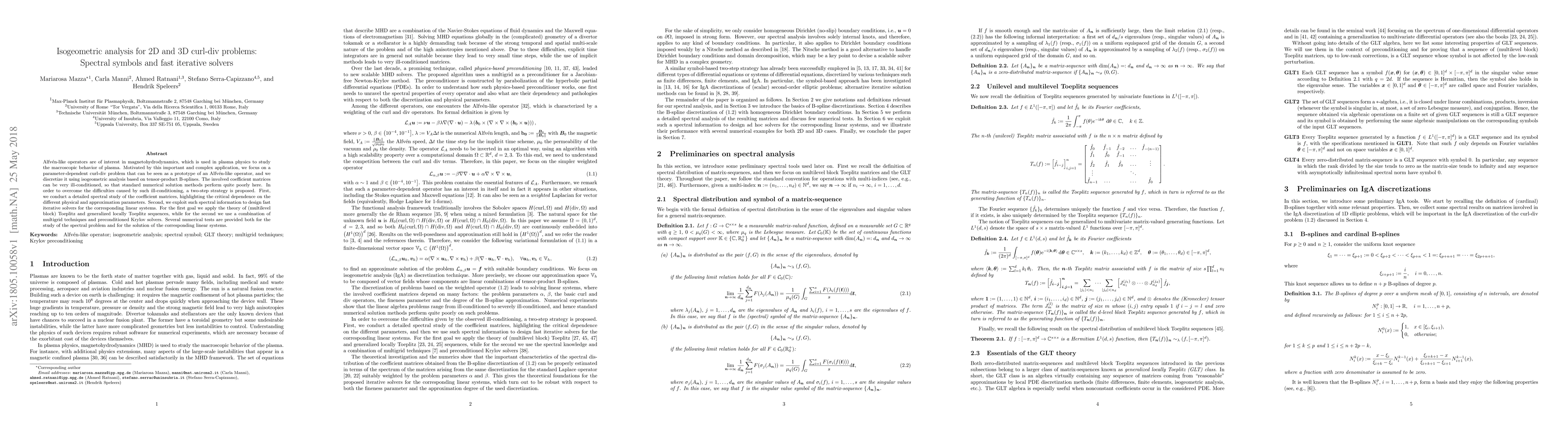 This paper investigates the discretization of a parameter-dependent curl-div problem using isogeometric analysis, focusing on Alfv\'en-like operators in magnetohydrodynamics. It proposes a two-step strategy to address ill-conditioning: spectral analysis of coefficient matrices and the design of fast iterative solvers using multigrid techniques and preconditioned Krylov methods.