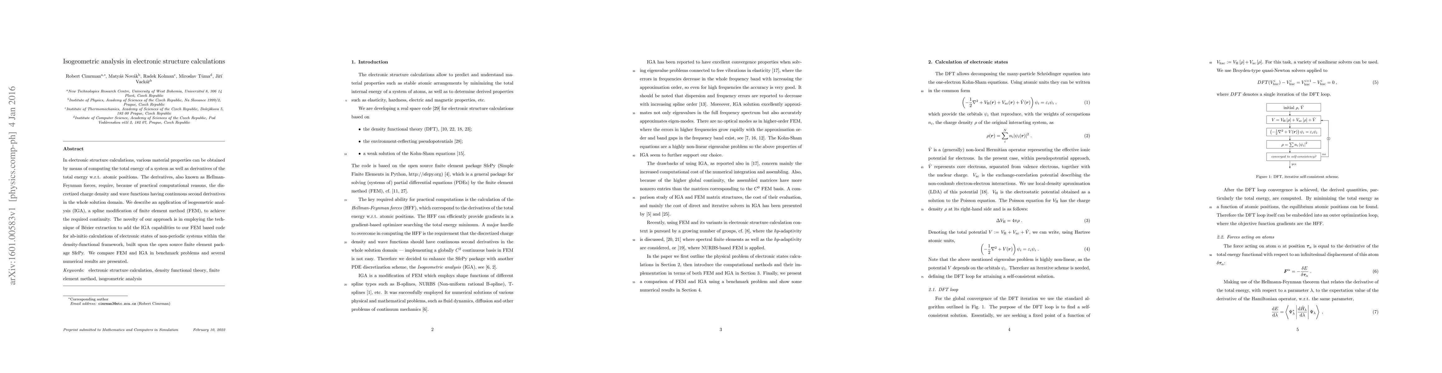 This paper applies isogeometric analysis (IGA) to electronic structure calculations, enhancing the continuity of discretized charge density and wave functions for accurate Hellman-Feynman forces. The authors introduce B\'ezier extraction to integrate IGA into an existing FEM-based code, demonstrating its effectiveness through benchmark comparisons.