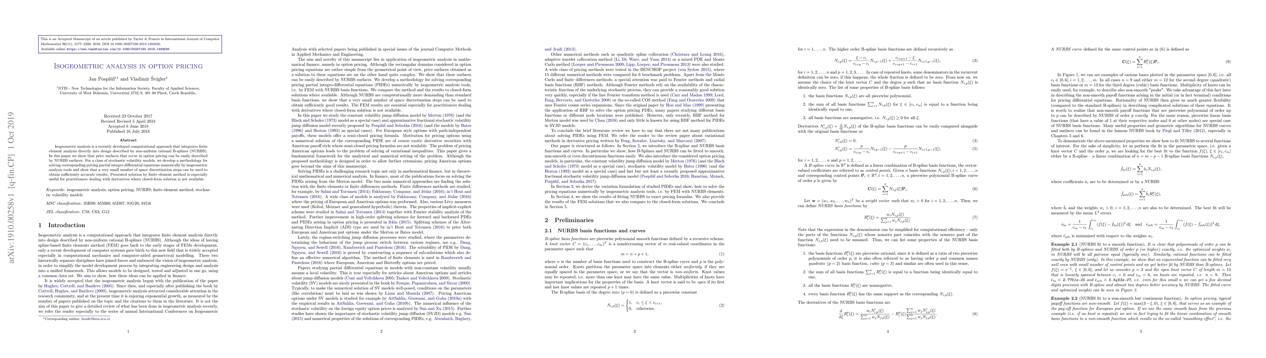 This paper introduces isogeometric analysis to solve option pricing problems, demonstrating that NURBS surfaces can describe price surfaces. The authors develop a numerical method using isogeometric tools to solve partial integro-differential equations, achieving high accuracy with minimal discretization, offering a practical alternative for derivatives pricing without closed-form solutions.